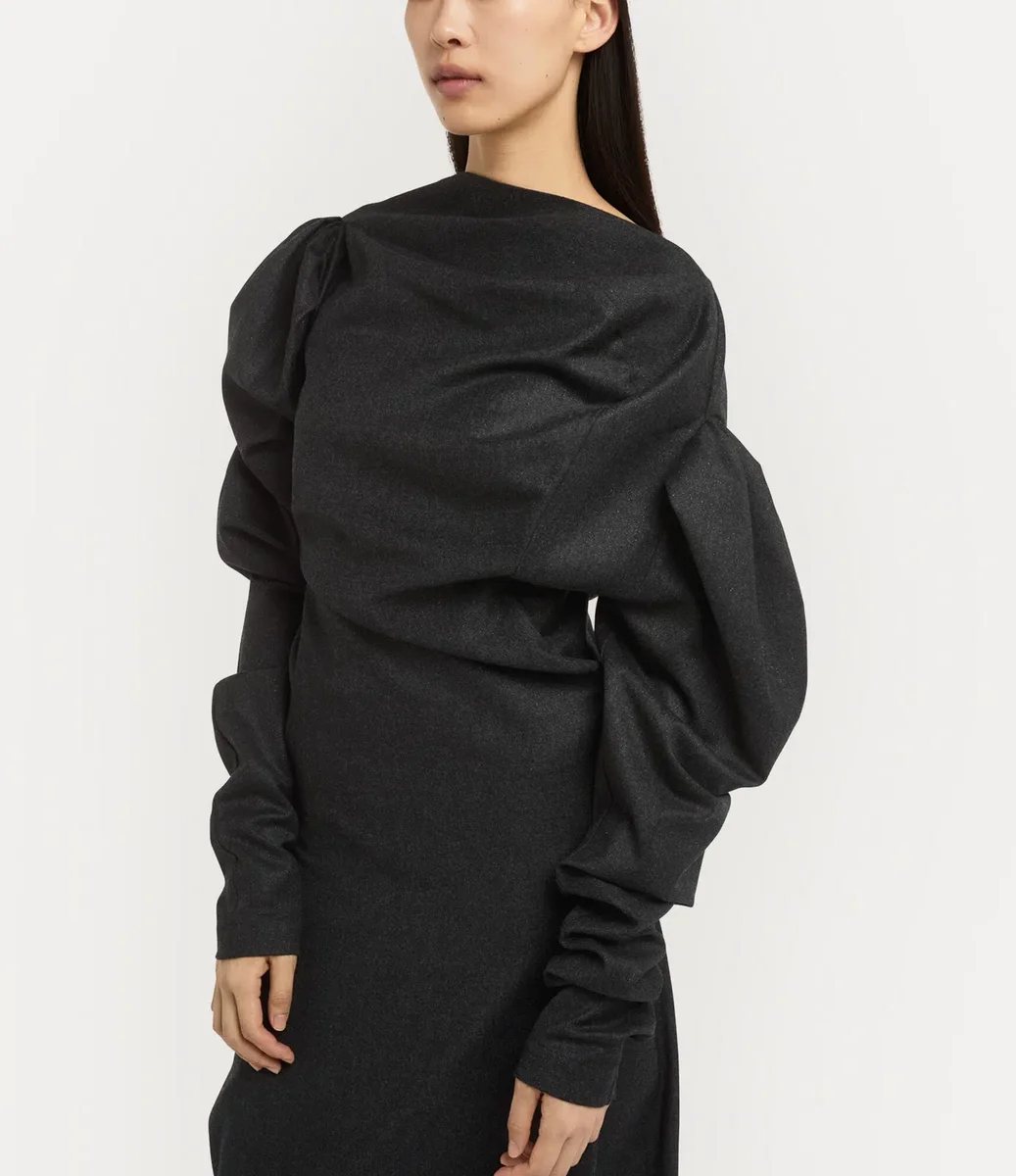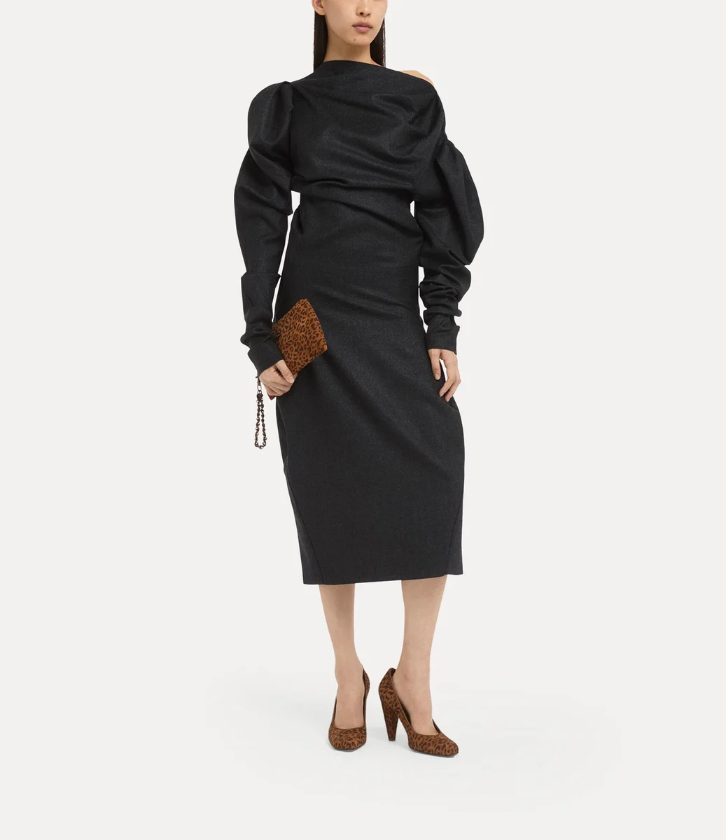 Il nostro abito LS Superbo presenta una silhouette sartoriale e scultorea, definita da spalle voluminose e strutturate e da un corpetto morbidamente drappeggiato. Con una raffinata silhouette di lunghezza midi, il modello presenta maniche lunghe arricciate e delicati spacchi laterali.