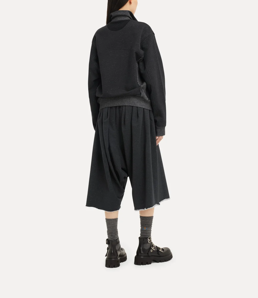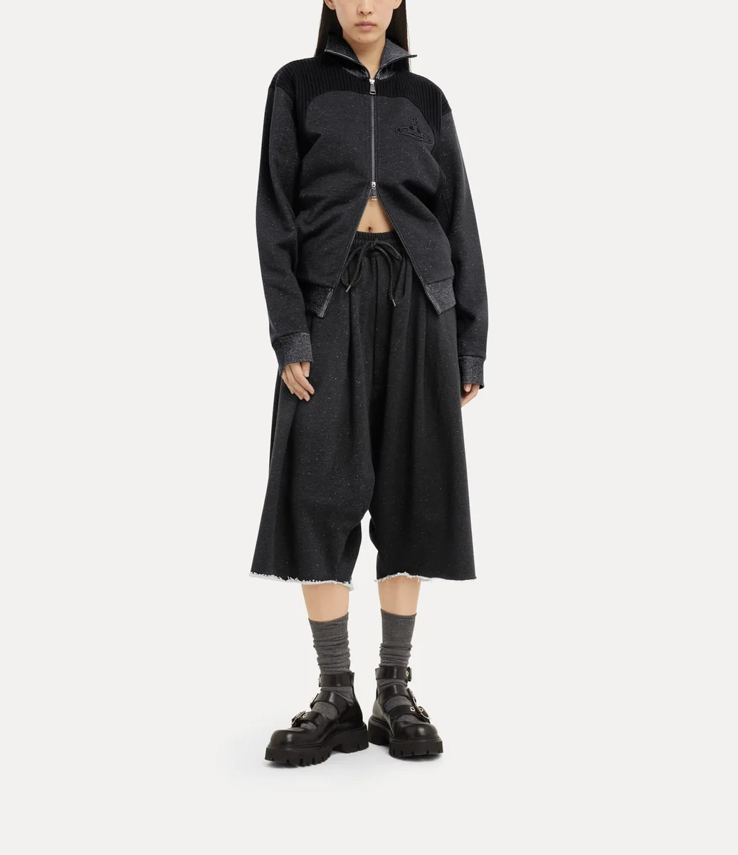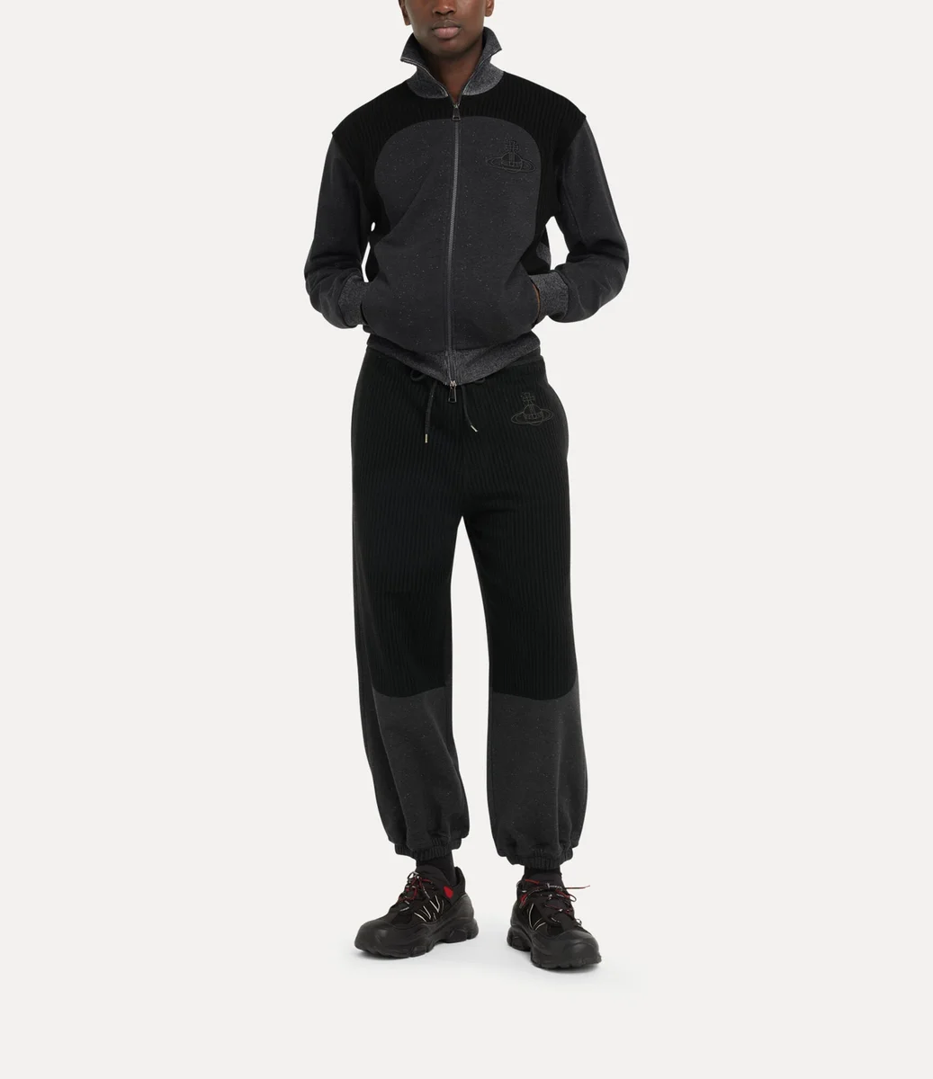 La giacca Alien Track di questa stagione reintroduce la chiusura con zip a doppio cursore, un dettaglio utilizzato per la prima volta da Vivienne Westwood tra la fine degli anni ’70 e l’inizio degli anni ’80 come simbolo di anticonformismo e segno distintivo della sua estetica punk ribelle. Caratterizzata da un collo alto e da pannelli a costine su tutta la superficie, la giacca è rifinita con il motivo Graffiti orb della maison, ricamato con discrezione sul petto con filo tono su tono.