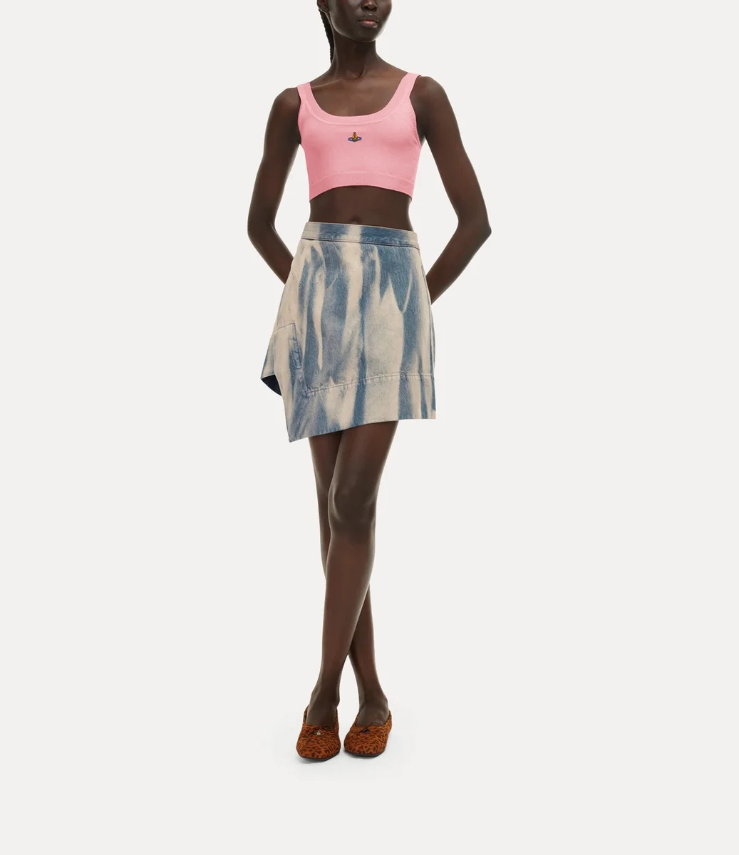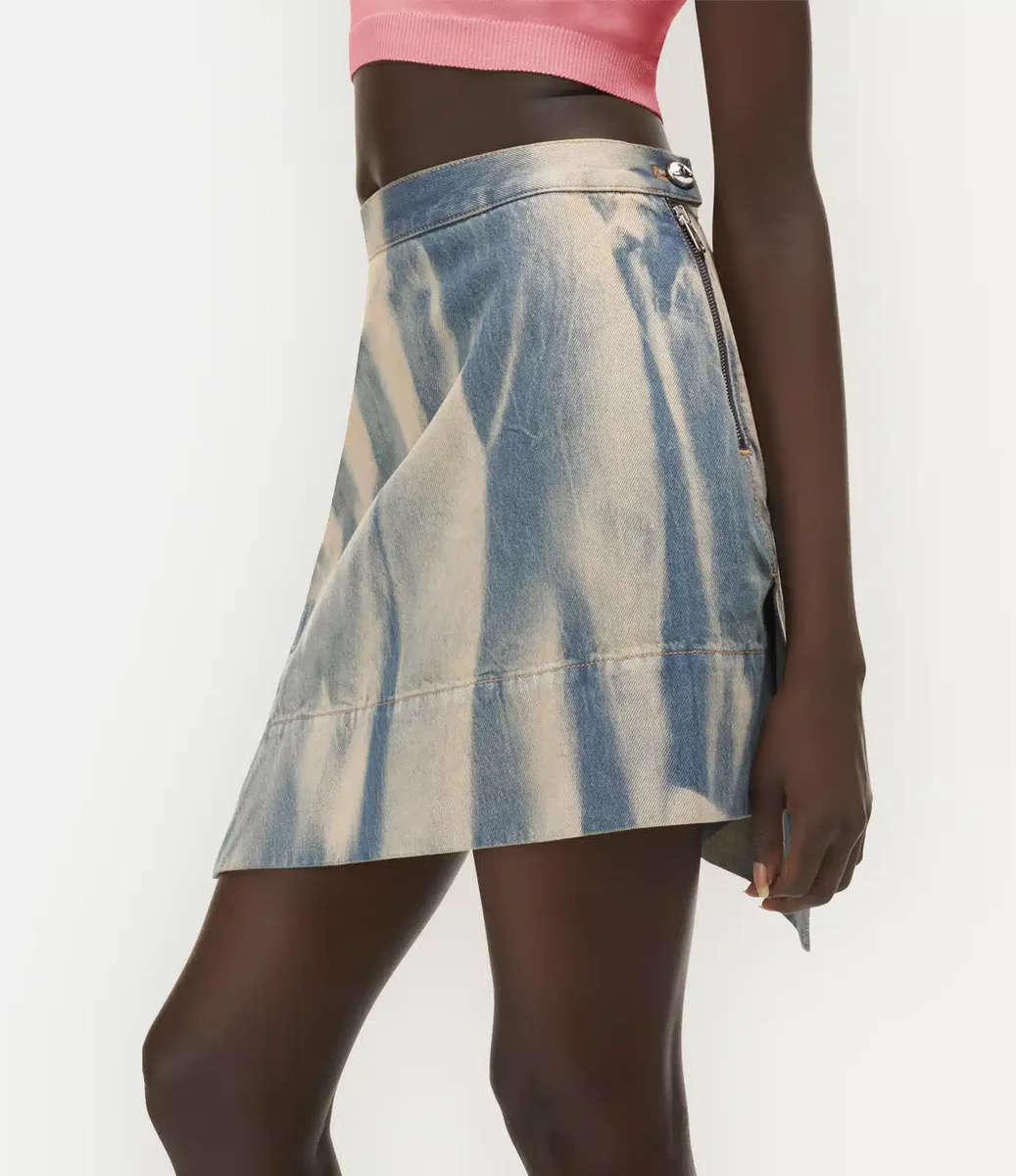 La gonna Mini Infinity di Vivienne Westwood, in morbido cotone, presenta un lavaggio sbiadito e candeggiato per un look vissuto, completato da una chiusura incrociata sul davanti.
