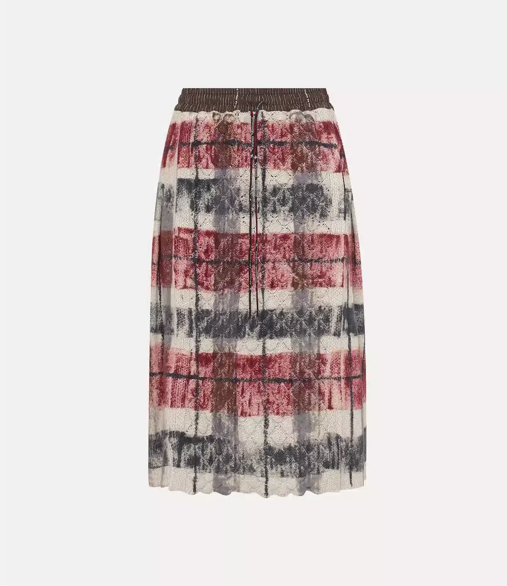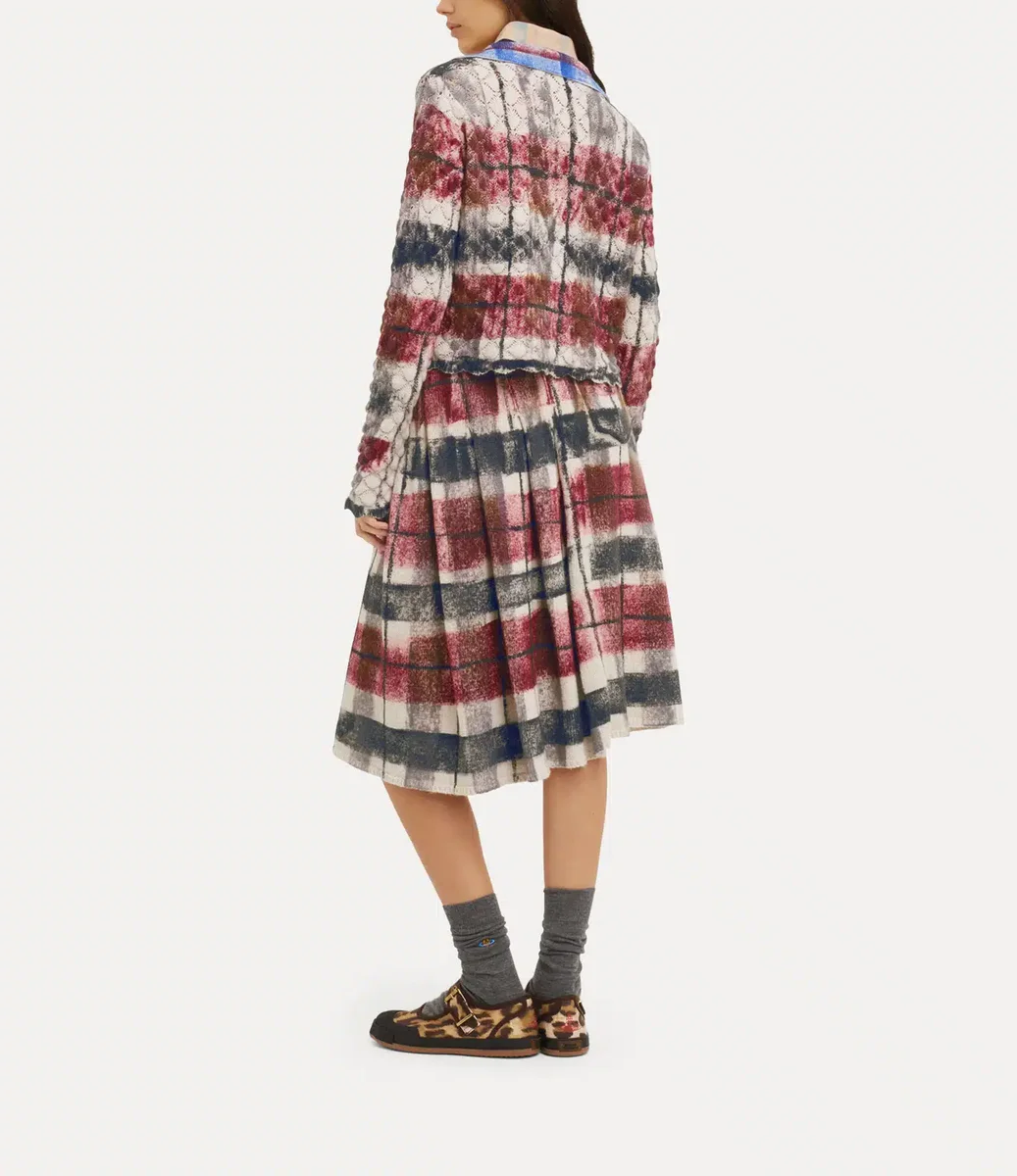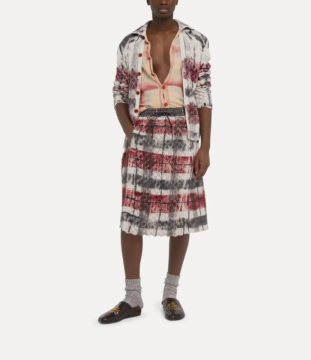 Il nostro kilt Dual Tartan presenta un motivo tartan effetto consumato, ispirato ai tradizionali abiti cerimoniali delle Highlands scozzesi, rifinito con chiusure con coulisse con marchio sul davanti. La cintura a vita alta è in contrasto con un motivo gessato, mentre l’orlo di media lunghezza è delicatamente smerlato.