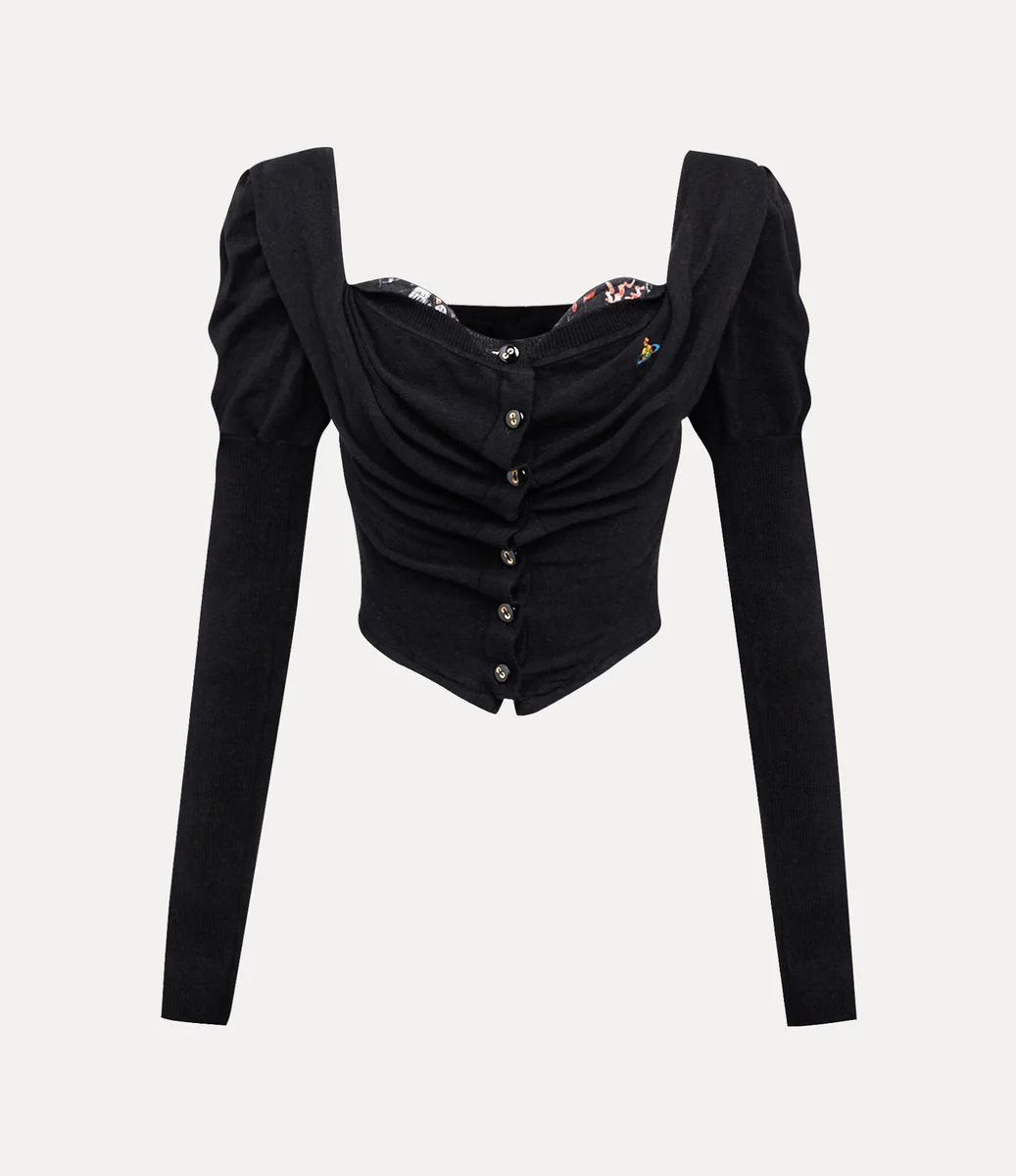 Il nostro cardigan Bea Corset è realizzato in morbido misto cotone e cashmere e si chiude con bottoni luccicanti in madreperla. Caratterizzato da un design a contrasto in stile corsetto e da un elegante drappeggio sulla scollatura, il capo è rifinito con spalle intricate e gonfie per una silhouette scultorea.