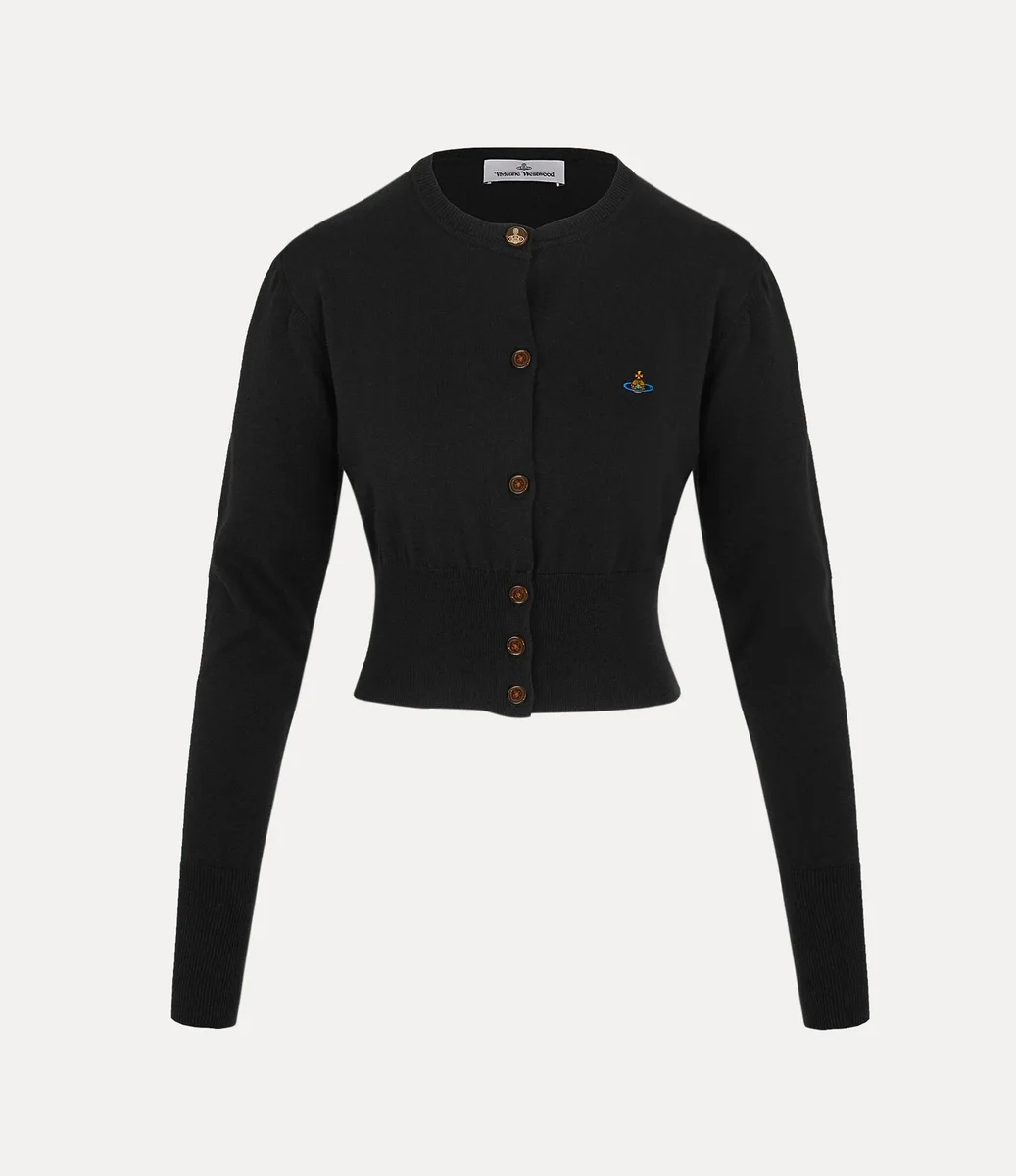 Il nostro cardigan corto Bea è stato rivisitato in questa stagione, realizzato in un morbido misto cotone e cashmere e impreziosito da un ricamo multicolore a forma di globo sul lato sinistro del petto. Il capo presenta una grande chiusura con bottoni ovali sullo scollo, rifinita con il classico motivo “Line Orb” inciso.