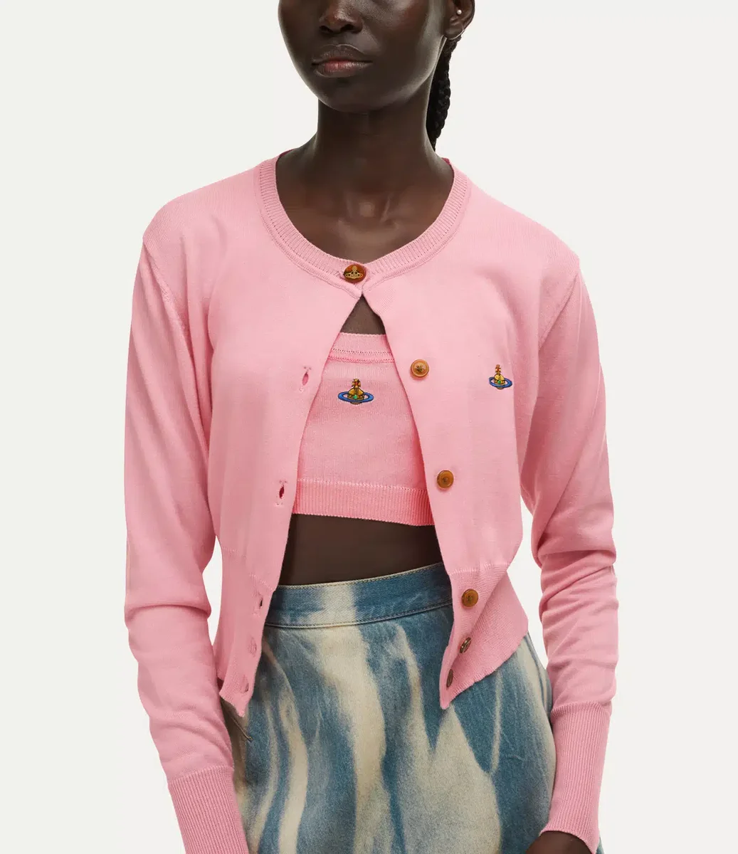 Il nostro cardigan corto Bea è stato rivisitato in questa stagione, realizzato in un morbido misto cotone e cashmere e decorato con un ricamo multicolore a forma di sfera sul lato sinistro del petto. Il capo presenta una grande chiusura con bottoni ovali sul collo, rifinita con il classico motivo “Line Orb” inciso.