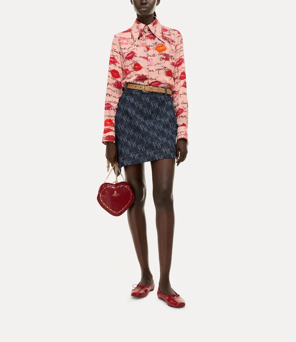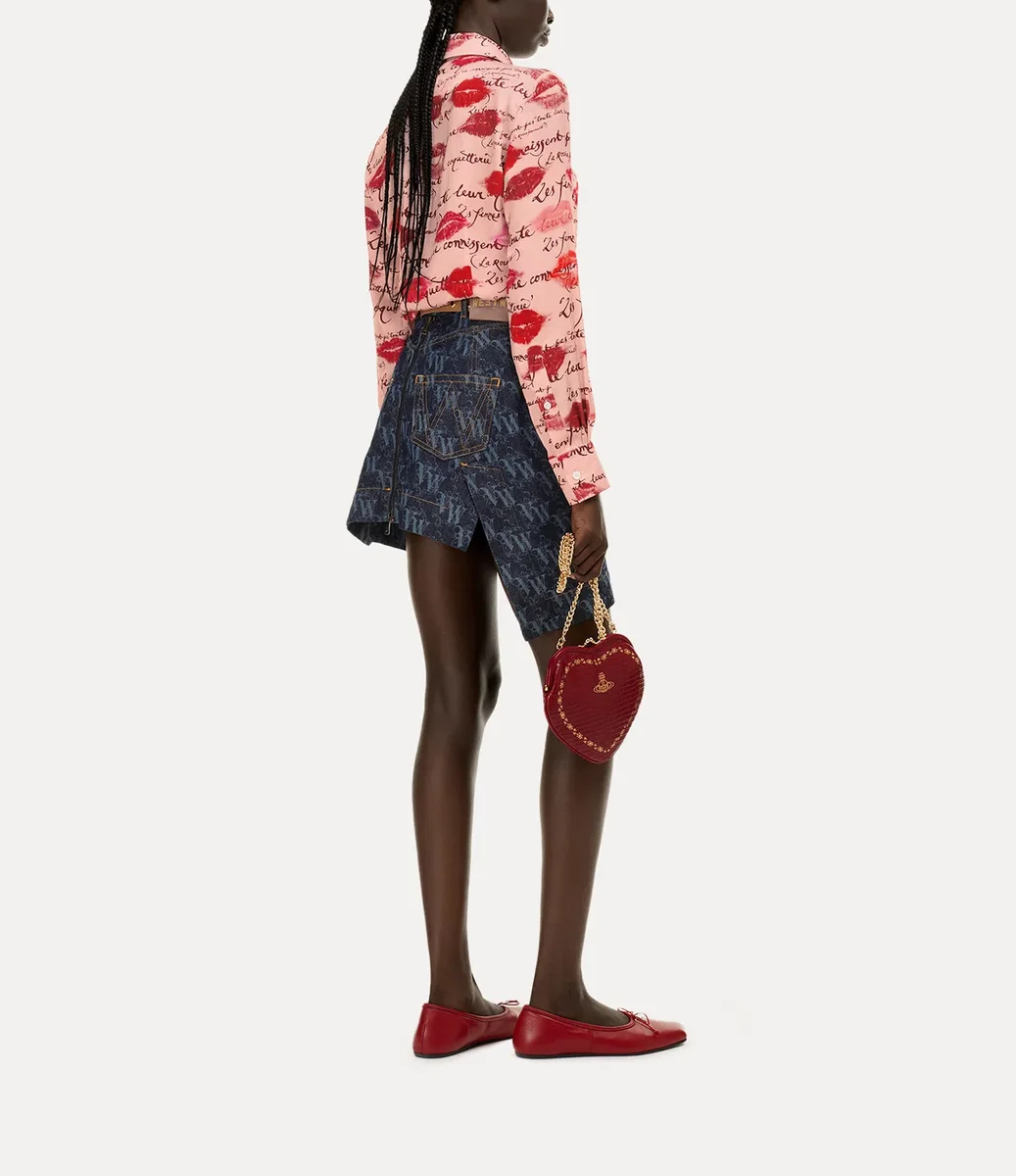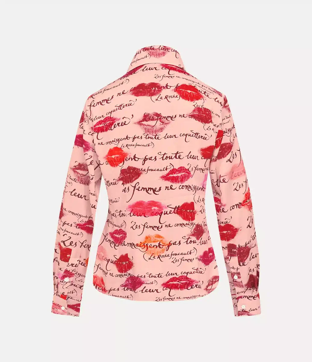 La nostra camicia da smoking Violin presenta il caratteristico colletto a due bottoni della maison, impreziosito dalla grafica “Kisses”, ispirata alla confezione del nostro profumo “Boudoir”. Il capo presenta un colletto a punta esagerato, rifinito con delicate pinces sul busto e in vita per una forma scolpita e sagomata.