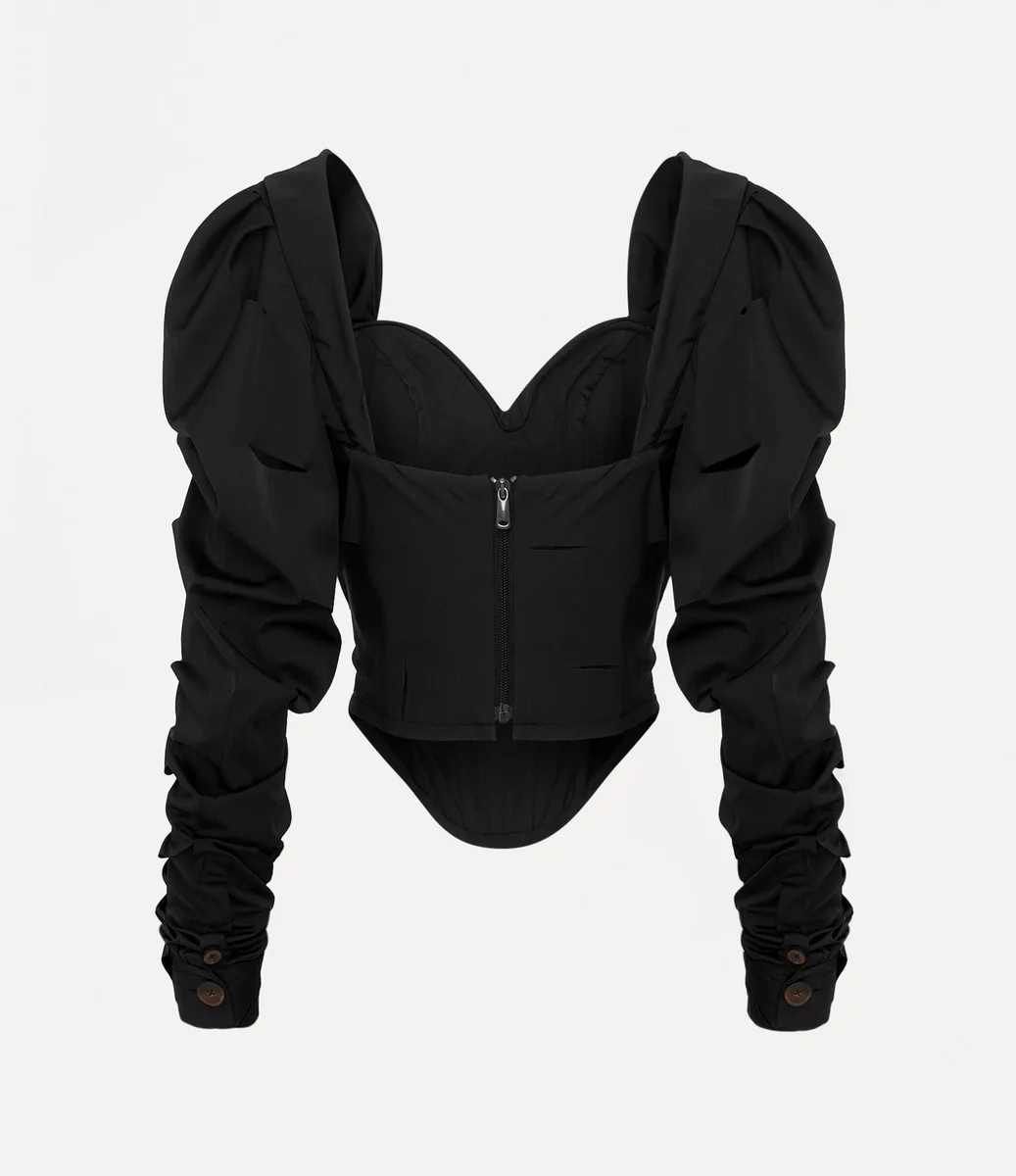 Il nostro top LS Sunday Corset è realizzato in taffetà riccamente tinto e presenta un delicato disegno tagliato al laser, ispirato alle opere d’arte della sfilata Autunno-Inverno 2024-2025 di Andreas Kronthaler. Il capo è modellato con un corpetto scolpito in stile corsetto e rifinito con una zip con pomello inciso a forma di sfera sul retro.