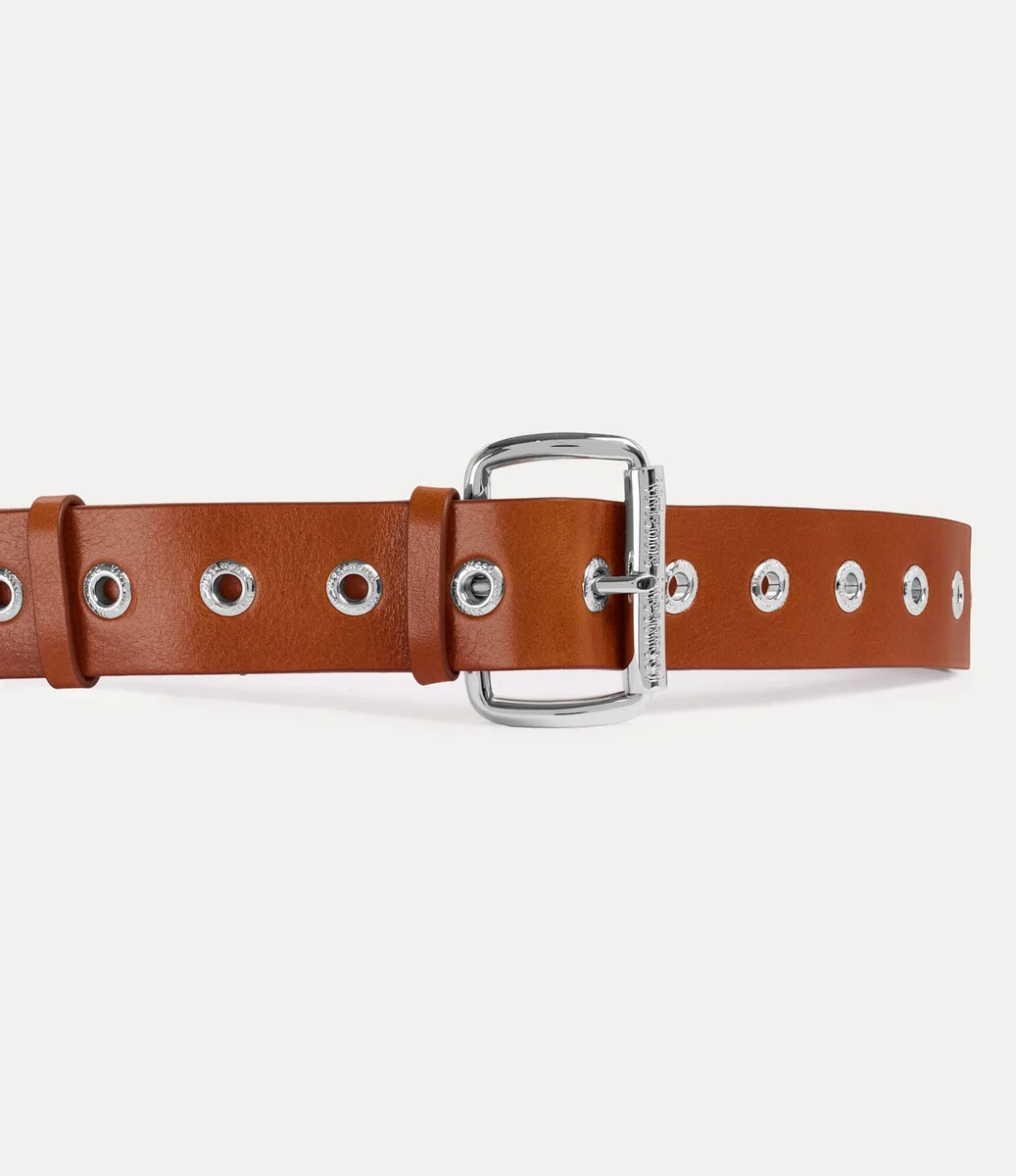 La cintura Bondage di Vivienne Westwood è realizzata in pelle lucida conciata al vegetale, impreziosita da dettagli metallici color argento.