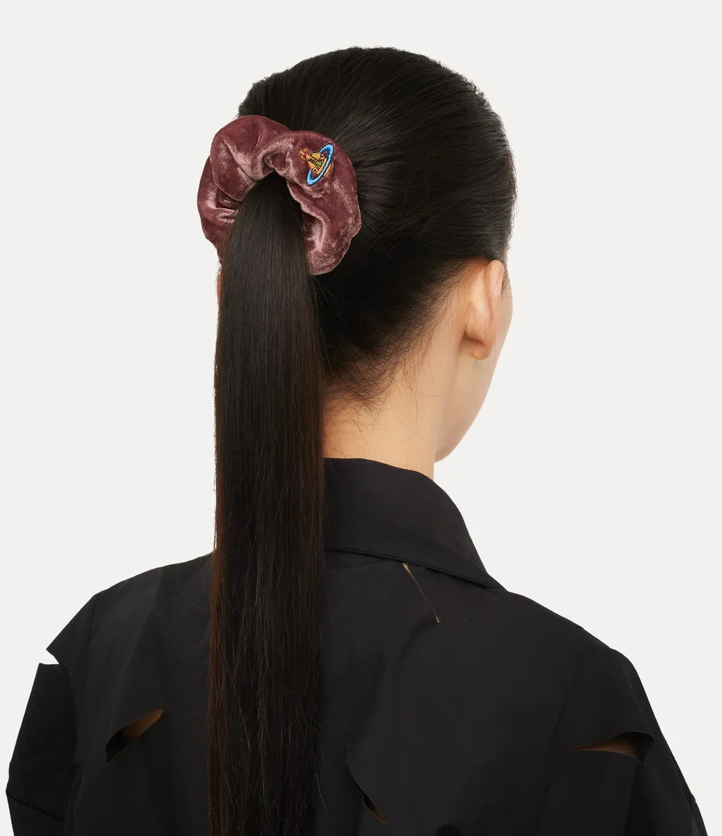 Il piccolo scrunchie di Vivienne Westwood è realizzato in morbido misto seta, con una finitura vellutata e un classico ricamo orb in filo multicolore.