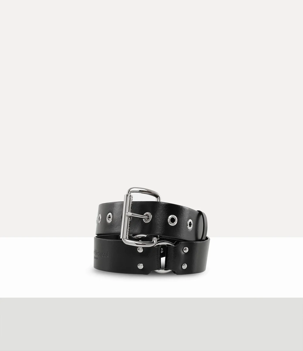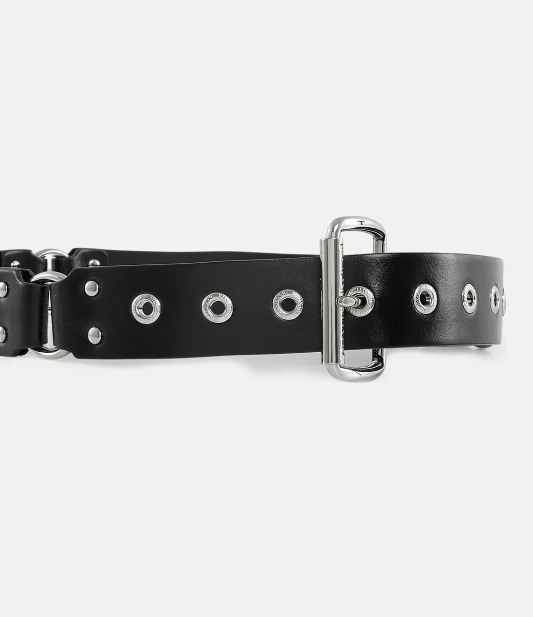 Ispirata alla collezione “Erotic Zones” di Vivienne Westwood Primavera-Estate 1995, questa cintura è decorata con audaci anelli ispirati al bondage e dettagli metallici di grande impatto. Una fibbia a rullo lucida completa il design, mentre la scritta incisa decora i dettagli degli occhielli.