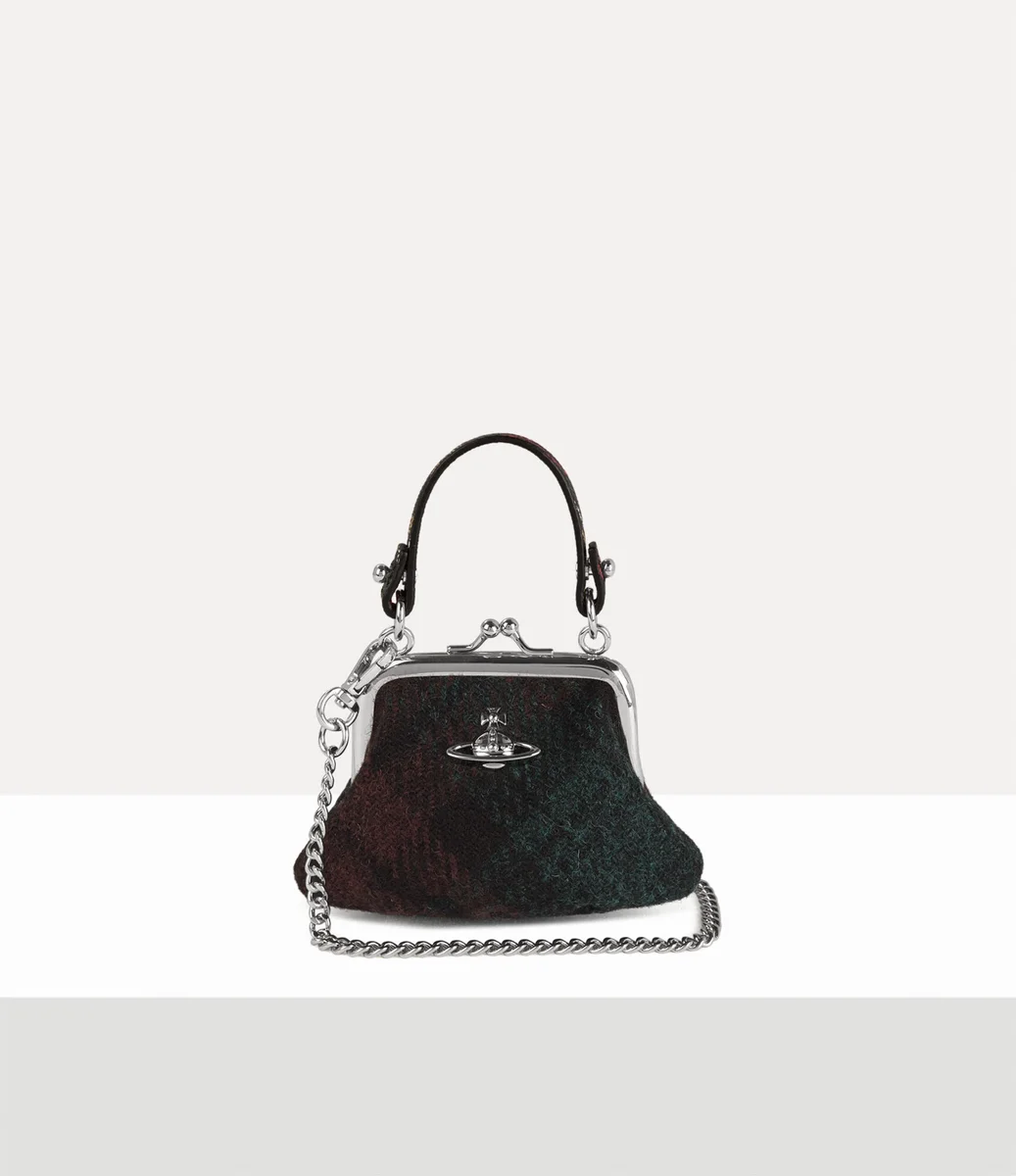 La borsetta Mini Granny Frame è una versione più piccola dell’iconica borsetta Granny Frame della maison. Realizzata in Harris Tweed, tessuto a mano da artigiani delle Ebridi Esterne scozzesi, il modello presenta una silhouette delicatamente strutturata e il nostro caratteristico motivo a sfere multicolori, reso nella finitura trapuntata di questa stagione.