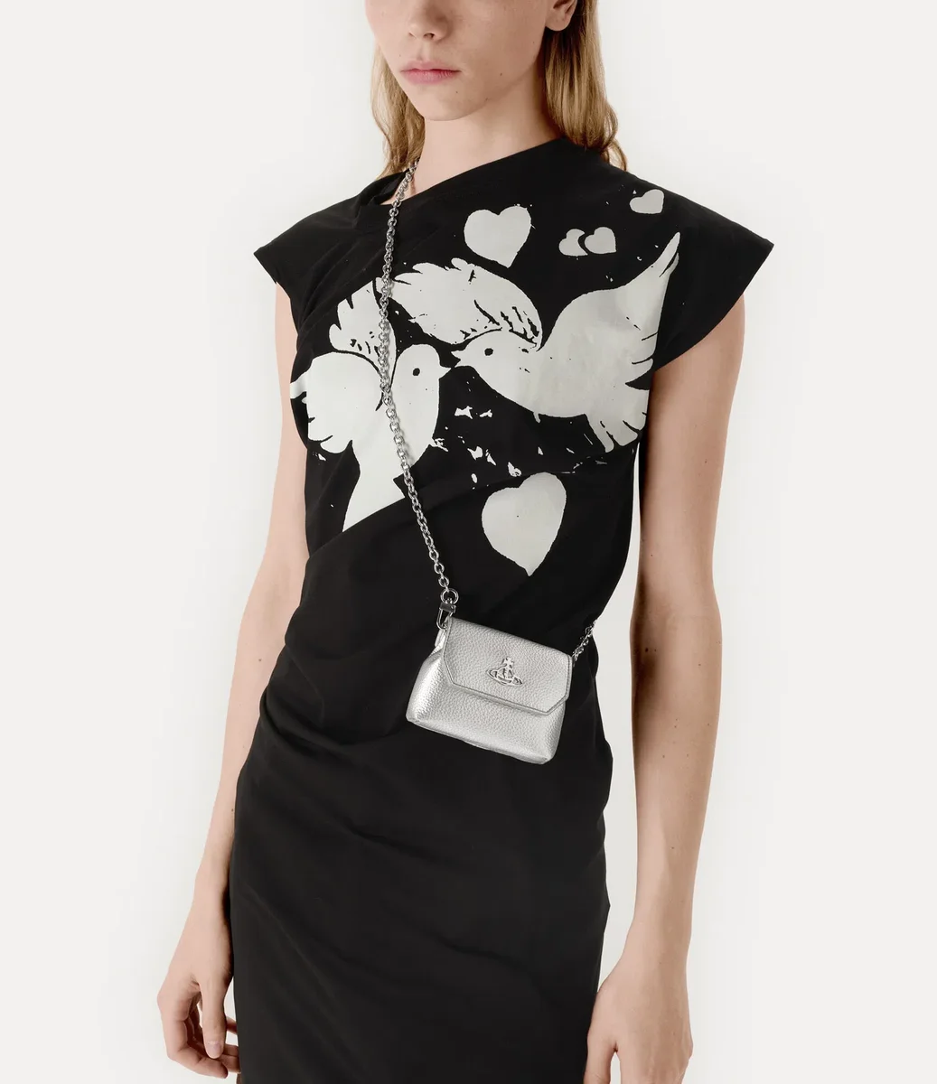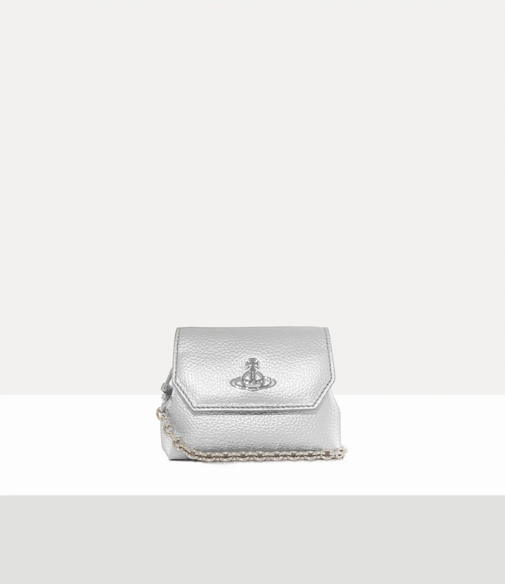 La Nano Pouch è realizzata in pelle PU e presenta una goffratura effetto grana su tutto il design, impreziosita da dettagli metallici color argento e una tracolla a catena rimovibile. Il modello presenta il nostro motivo orb sulla chiusura magnetica con borchia, che simboleggia la tradizione, circondato dagli anelli celesti di Saturno, che simboleggiano il futuro.