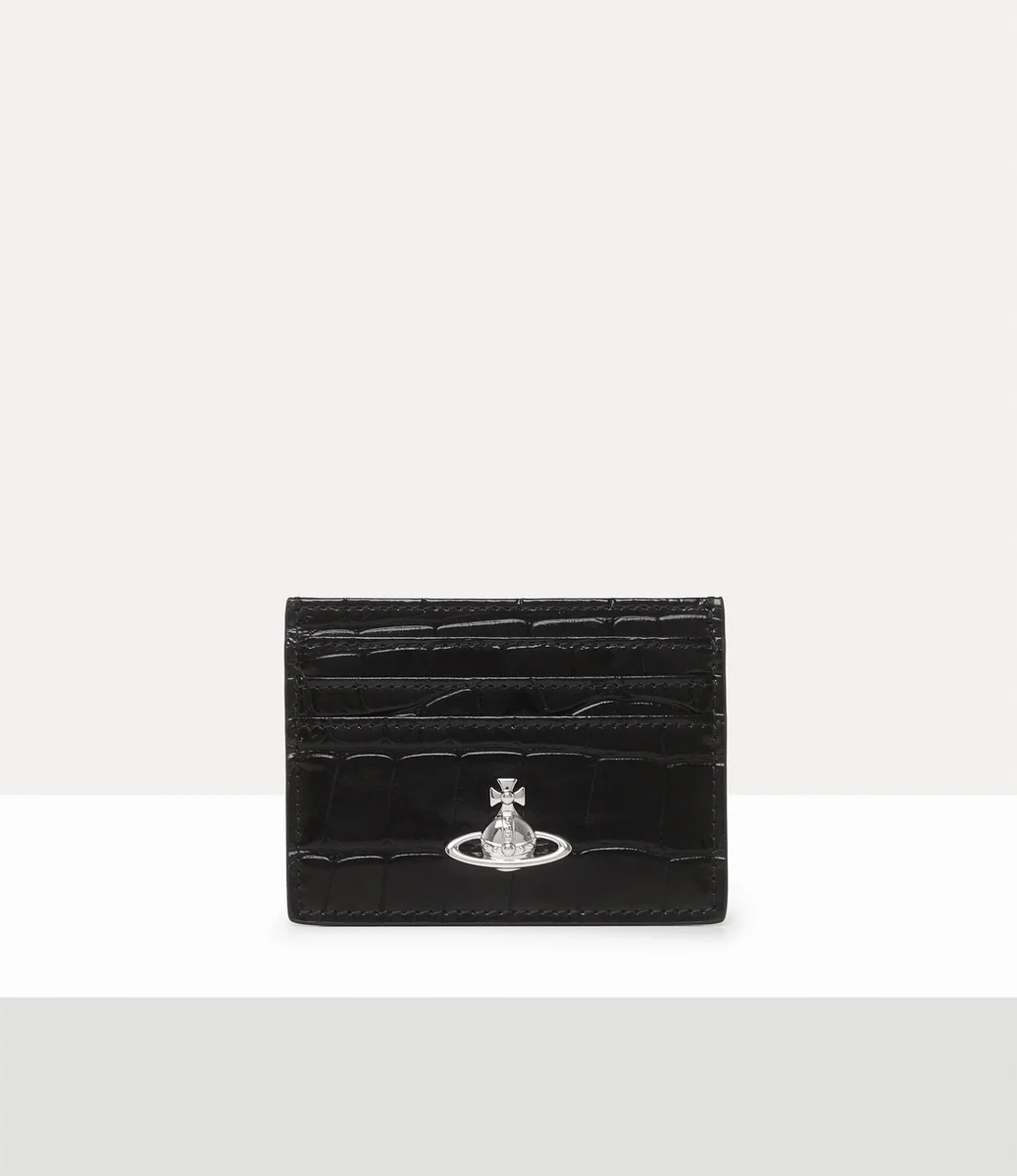 Il nostro caratteristico portacarte piatto è realizzato in pelle lucida con finitura goffrata effetto coccodrillo. Il profilo sottile è impreziosito dal motivo a sfera color argento sul davanti, che riflette la filosofia della maison di collegare il passato al futuro.