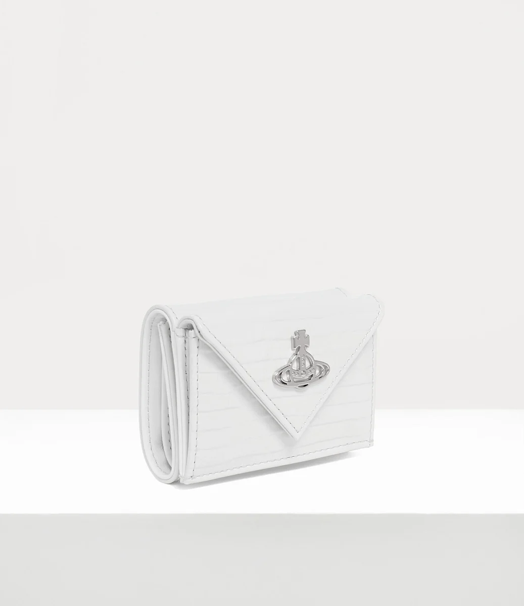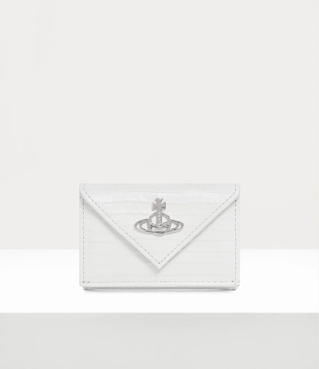 Il nostro portafoglio a busta è stato ripensato nella pelle goffrata effetto mini coccodrillo di questa stagione. Rifinito con il motivo metallico “Line Orb”, firma della maison, sulla chiusura con bottoni a pressione, questo accessorio incarna la visione di Vivienne di proiettare la tradizione nel futuro.