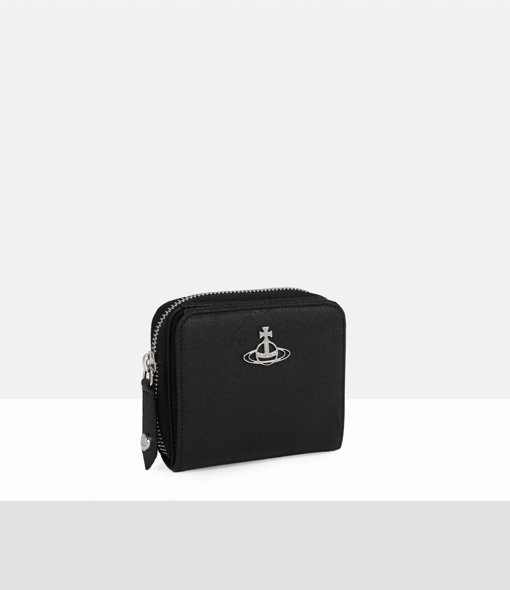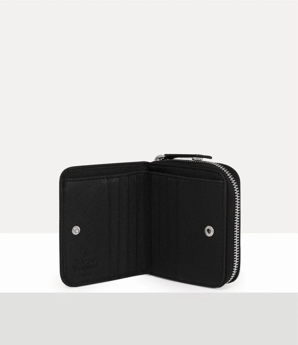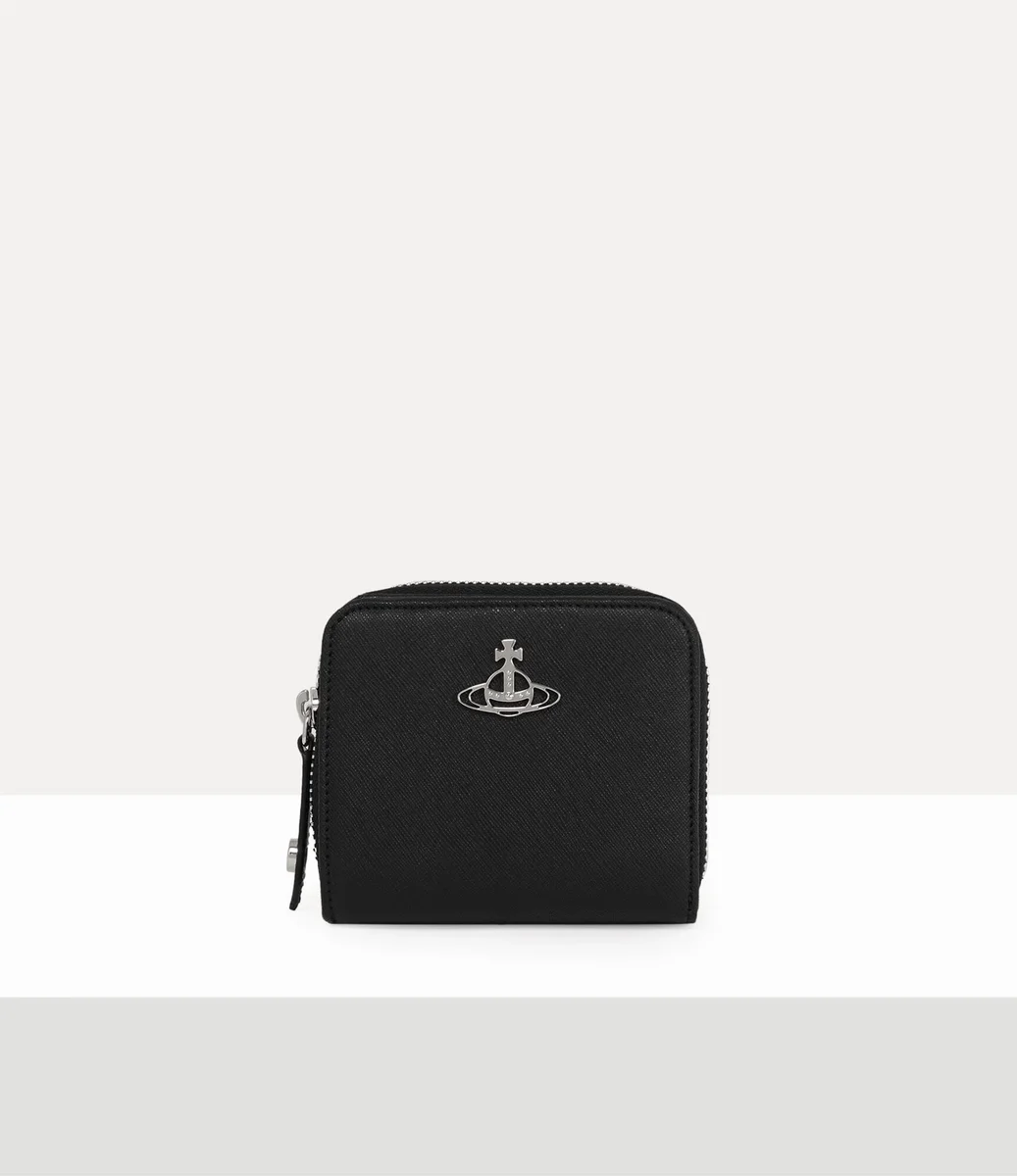 Il nostro portafoglio medio con zip, realizzato in pelle PU goffrata saffiano, presenta un interno organizzato con scomparti integrati per carte e uno scomparto dedicato per ricevute e banconote. Il modello offre una silhouette arrotondata e si chiude con una sicura chiusura a zip, completata da un globo tridimensionale sul davanti.