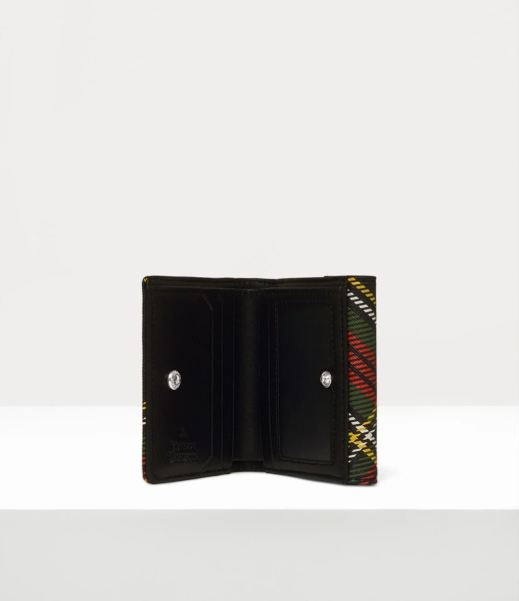 Il nostro portafoglio Small è stato ripensato con il motivo tartan “Chelsea” di questa stagione, completato da toni tenui e classici dettagli metallici color argento. Il modello è impreziosito dal motivo “Line Orb”, firma della maison, che cattura la visione di Vivienne di proiettare la tradizione nel futuro.
