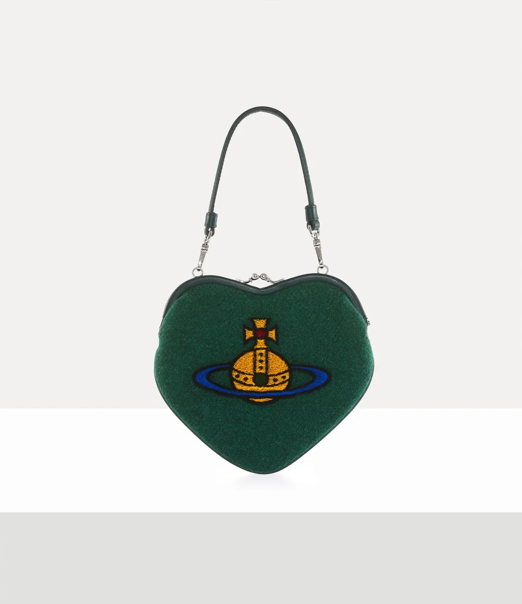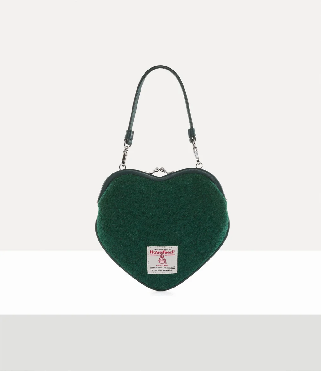 La borsa Belle Heart Frame, modello iconico del marchio, torna in questa stagione in lana tinta in filo, sapientemente screziata per riflettere la texture distintiva dell’Harris Tweed. Caratterizzata dalla classica silhouette a forma di cuore della maison, è rifinita con il nostro iconico motivo a sfere multicolori, reinterpretato nella finitura trapuntata di questa stagione.
