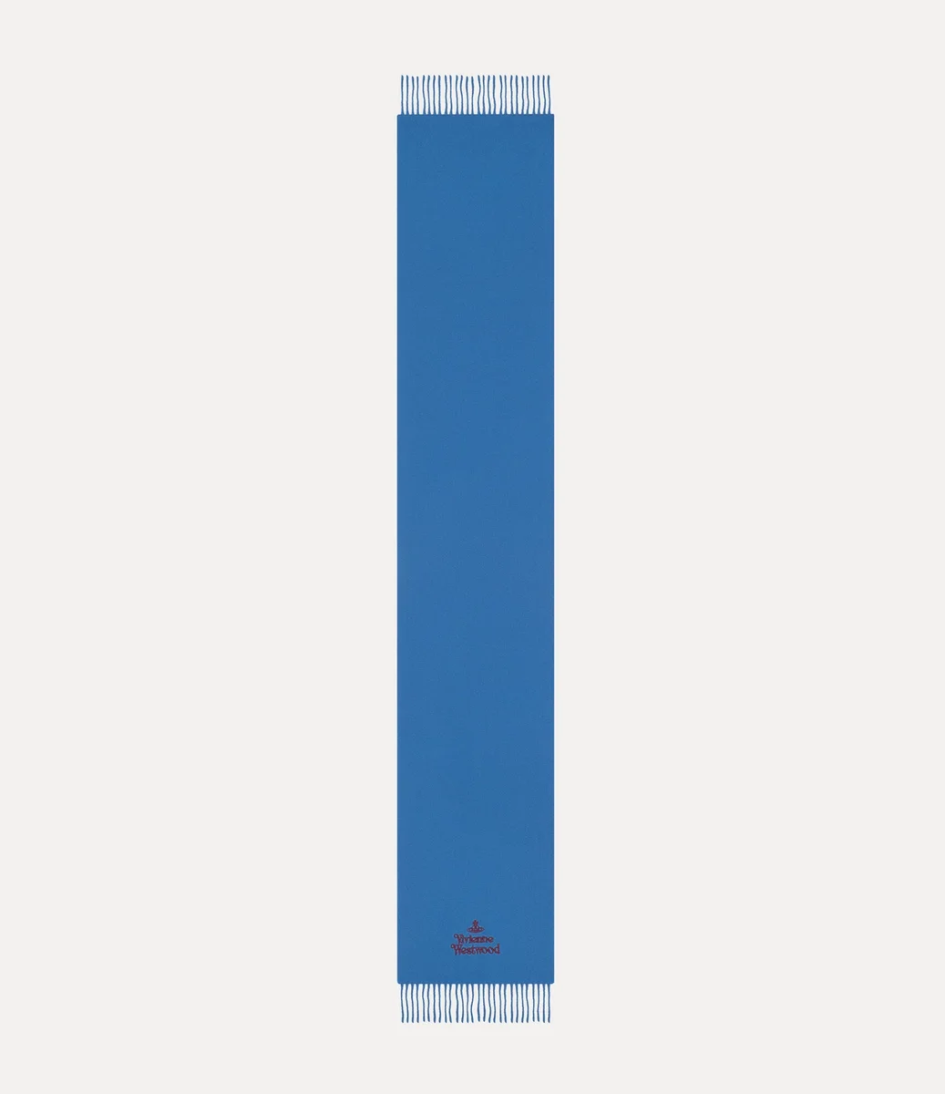 La sciarpa ricamata Vivienne Westwood presenta una morbida silhouette in lana, con il motivo con il logo del marchio nella parte inferiore del disegno.