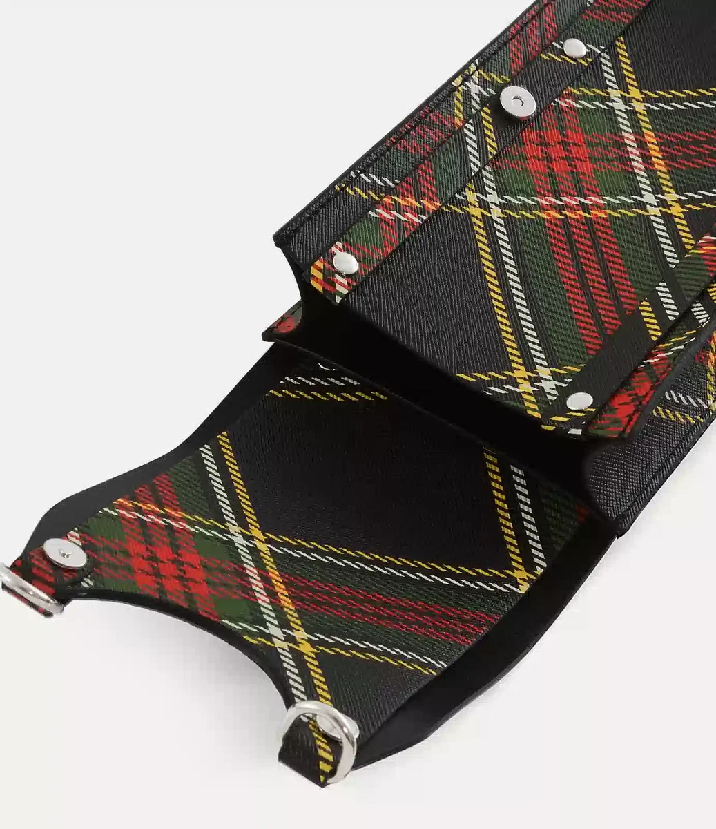 La nostra borsa Max Mini Crossbody presenta elementi ispirati al bondage, che ricordano la nostra collezione “Erotic Zones” della primavera-estate 1995, completata da dettagli metallici color argento. Il modello è decorato con il nostro vivace motivo tartan “Chelsea” e rifinito con un motivo “Line Orb” sulla patta frontale.