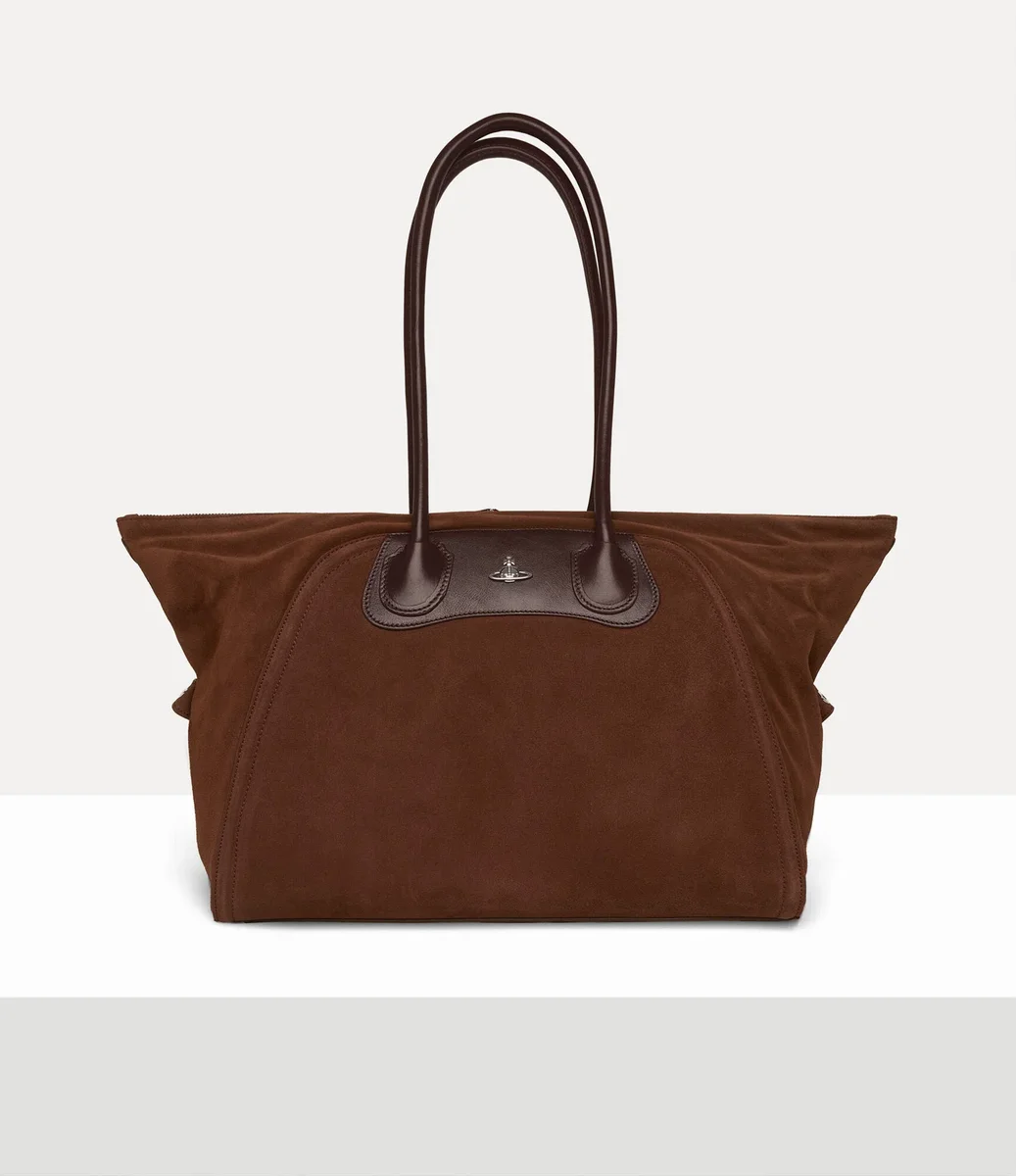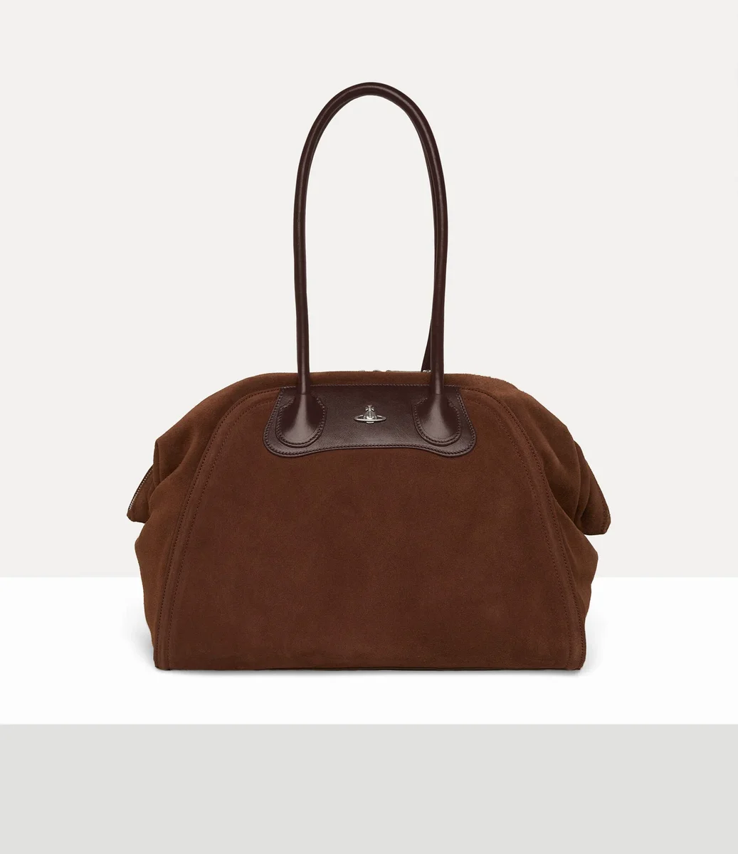 La borsa da viaggio Shirley di Vivienne Westwood è realizzata in pelle scamosciata con dettagli in morbida pelle e rifinita con la caratteristica sfera metallica del marchio sul davanti.