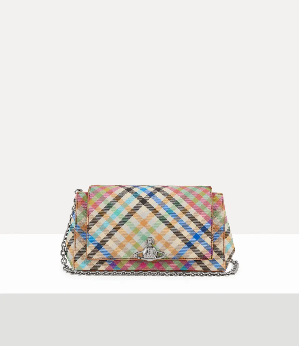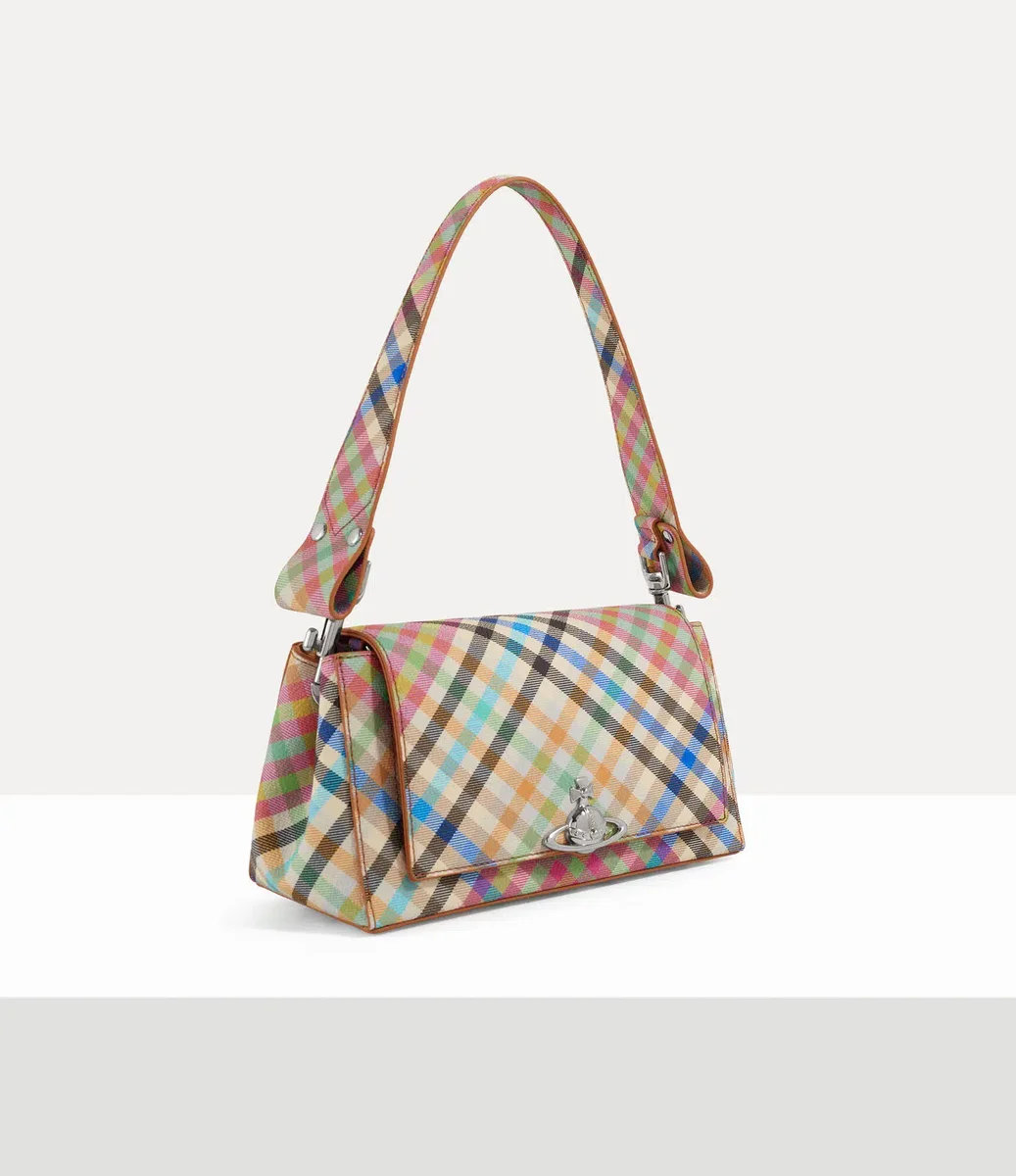 La nostra borsa Hazel Medium è stata ripensata in questa stagione con il vivace motivo “Heather Plaid”, caratterizzato da un motivo a quadri multicolore ispirato al ricco archivio della maison. La borsa si apre rivelando la nostra fodera “Union Jack” d’archivio ed è rifinita con l’emblema tridimensionale Orb sulla patta frontale.