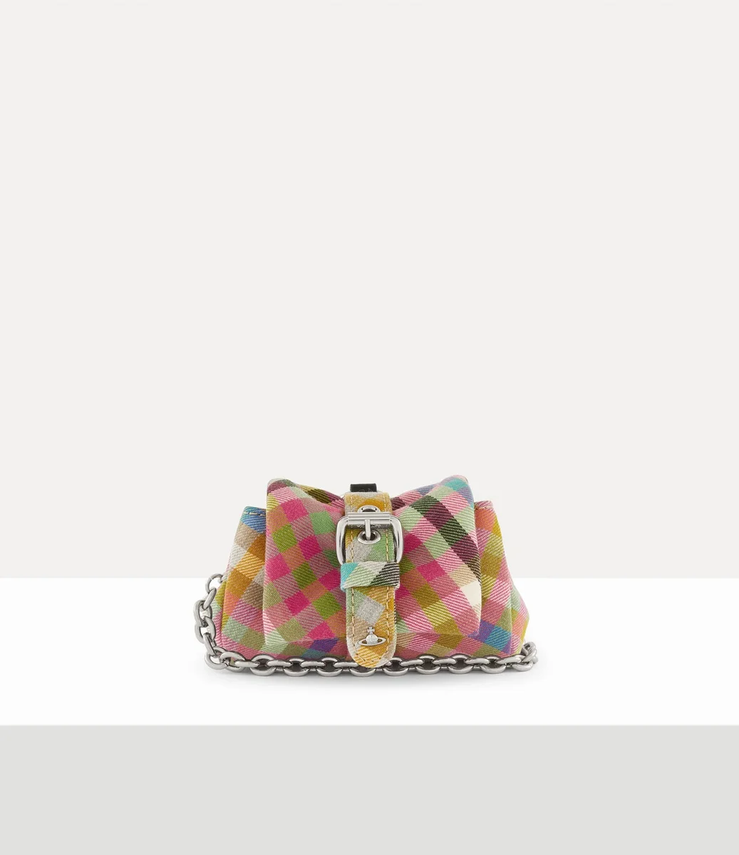 La borsa Vivienne Westwood Hazel Treasure Charm presenta il motivo a quadri “Heather” intrecciato di questa stagione, realizzato in lana e completato da una sfera metallica sulla cintura.