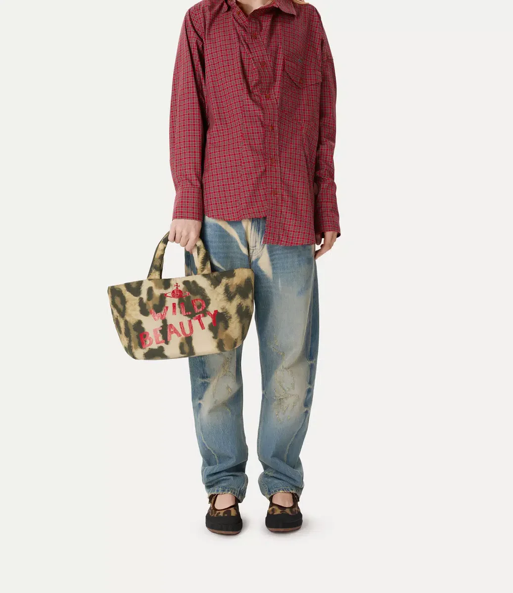 La nostra borsa tote Maud Medium è realizzata in nylon imbottito e decorata con un audace motivo leopardato, che richiama la collezione Gold Label Autunno-Inverno 2001 della maison, “Wild Beauty”. Caratterizzata da una silhouette trapezoidale senza tempo con doppio manico superiore, questa borsa offre un profilo morbido ma strutturato.