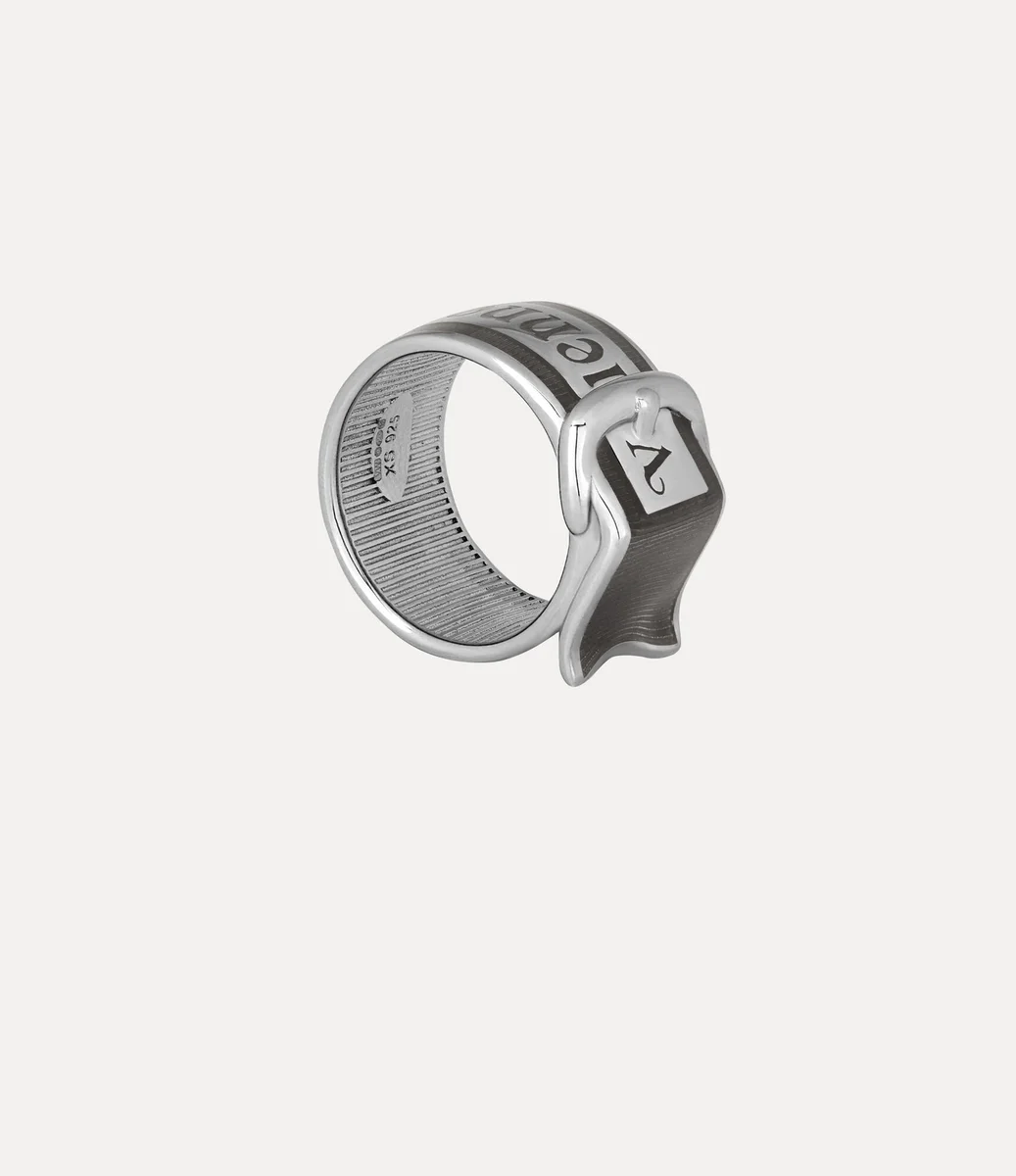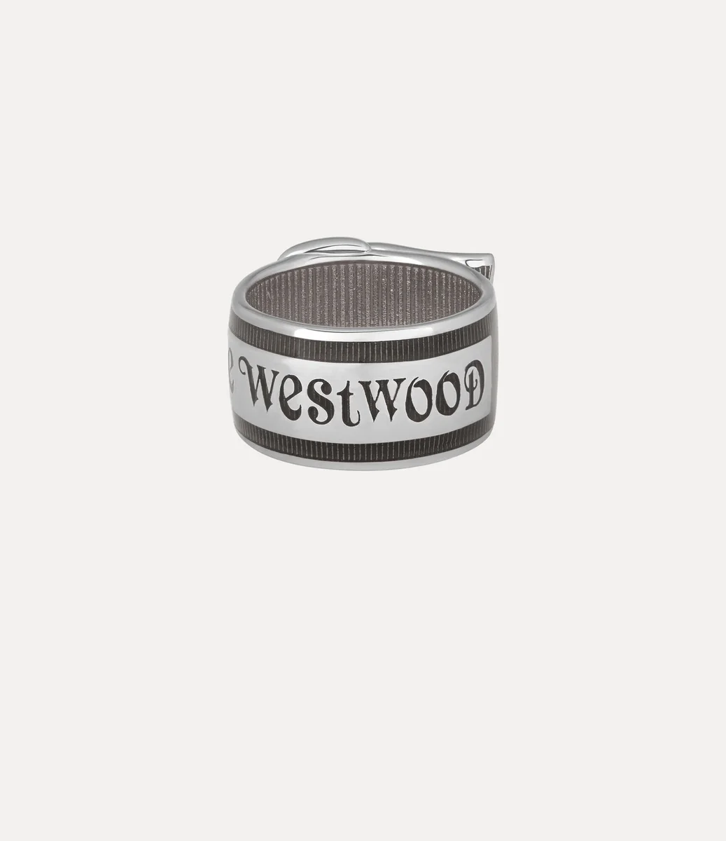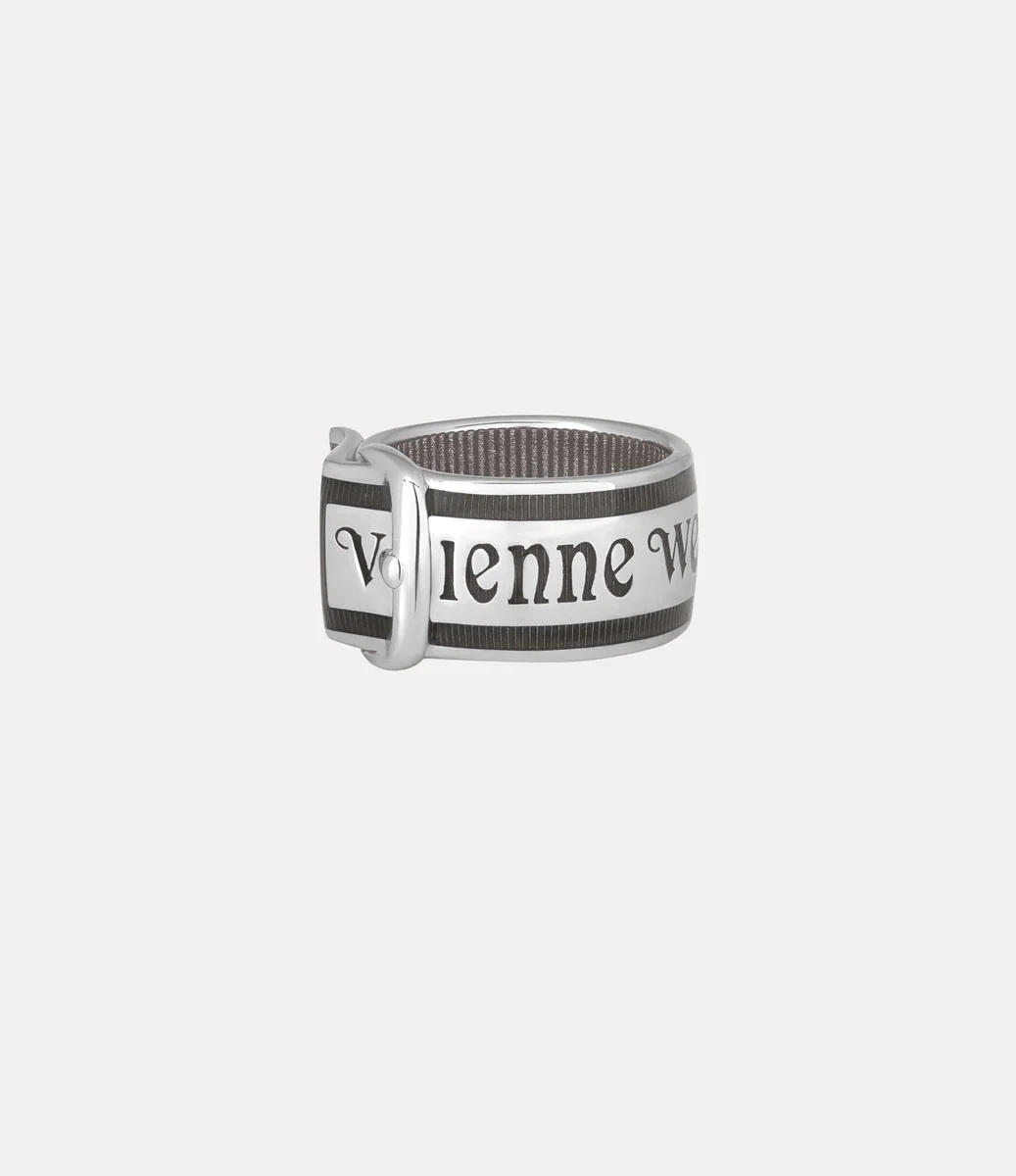 L’anello Enamel Belt reinterpreta un design d’archivio della maison con una placcatura color platino, caratterizzato da smalto dipinto a mano applicato sulla fascia a coste e sulla scritta “Vivienne Westwood”. Rifinito con una fibbia scolpita, il gioiello riprende la forma della nostra silhouette a cintura distintiva.