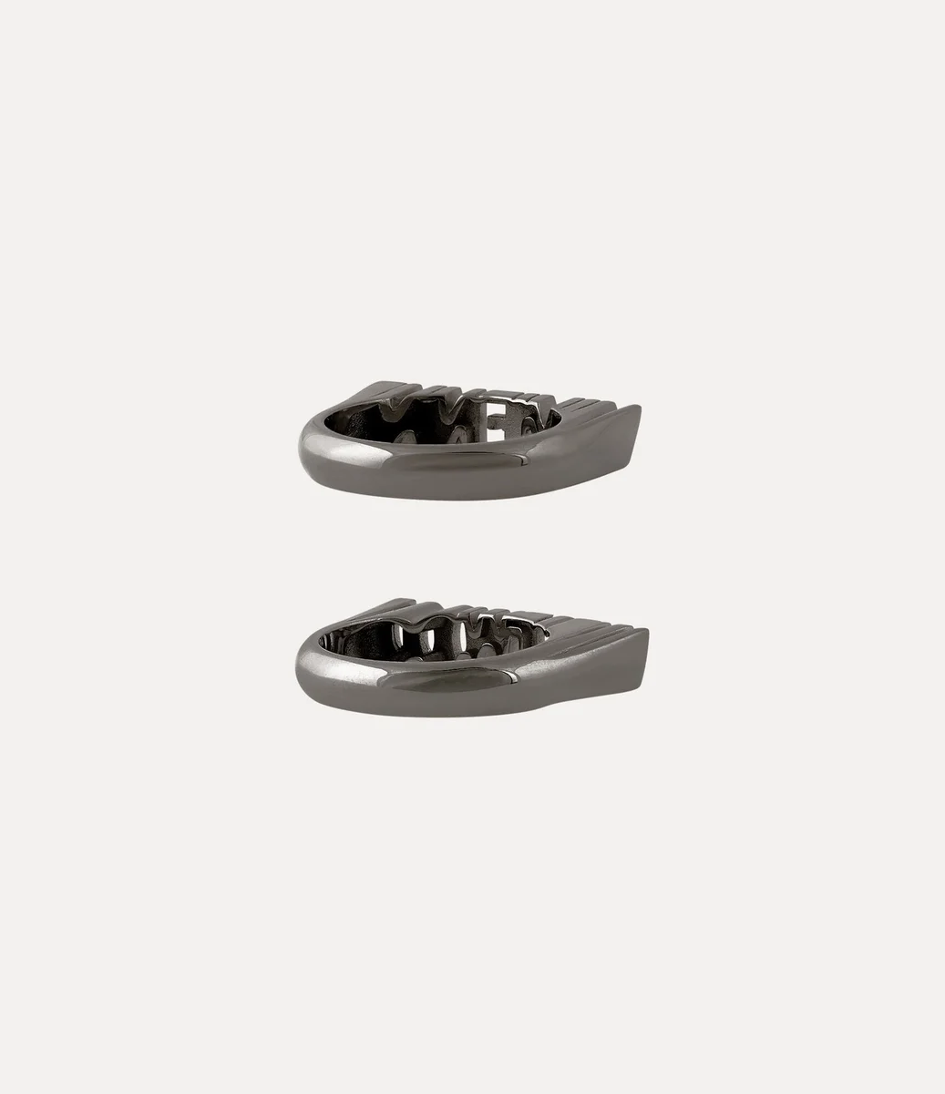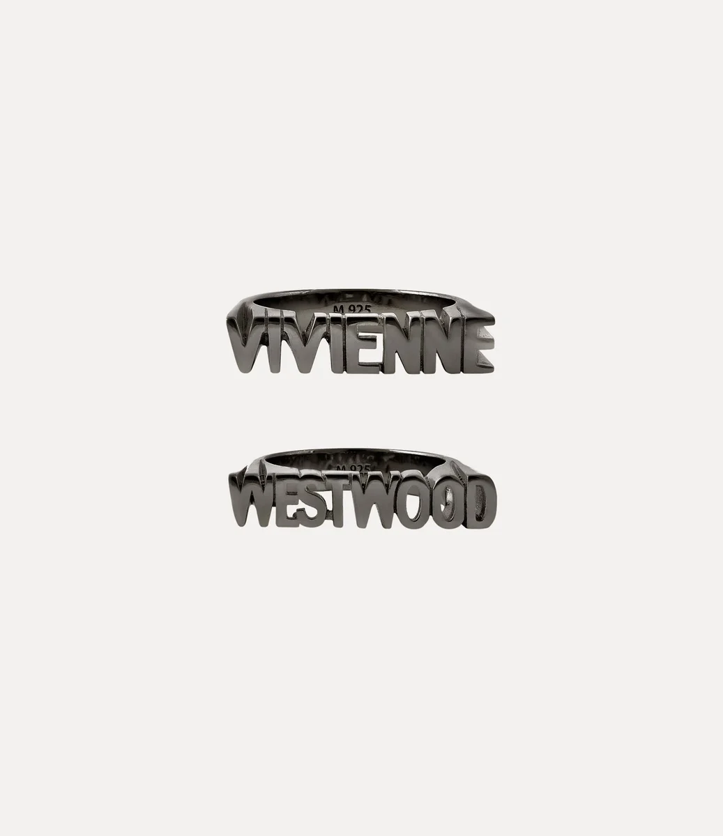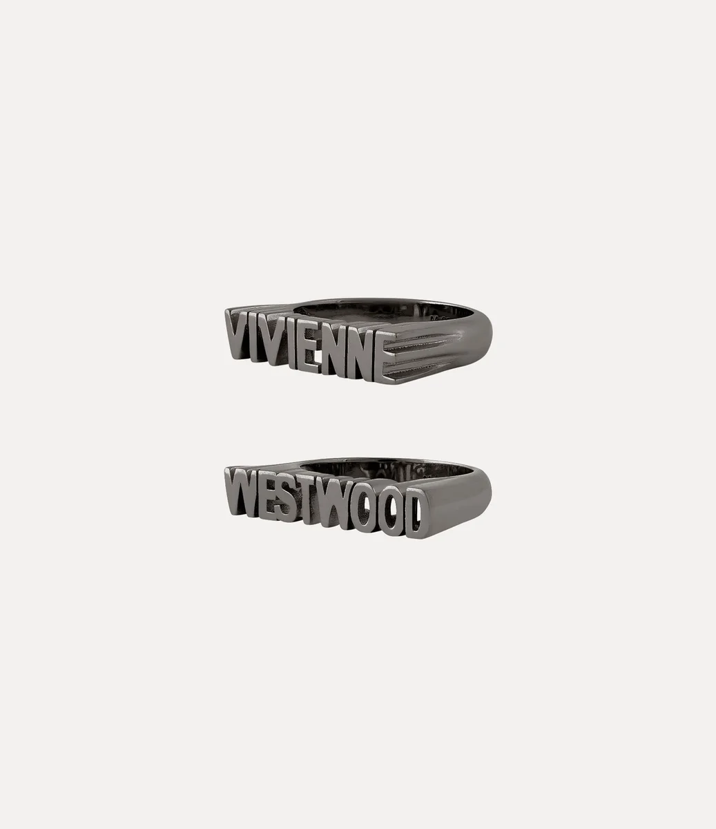 Il nostro anello Essex è realizzato in argento riciclato e rifinito con una placcatura lucida color canna di fucile. Caratterizzato da due audaci fasce interamente in metallo, una con la scritta “Vivienne” e l’altra con la scritta “Westwood”, il design è accentuato da intricati dettagli traforati che tracciano i contorni di ogni lettera.