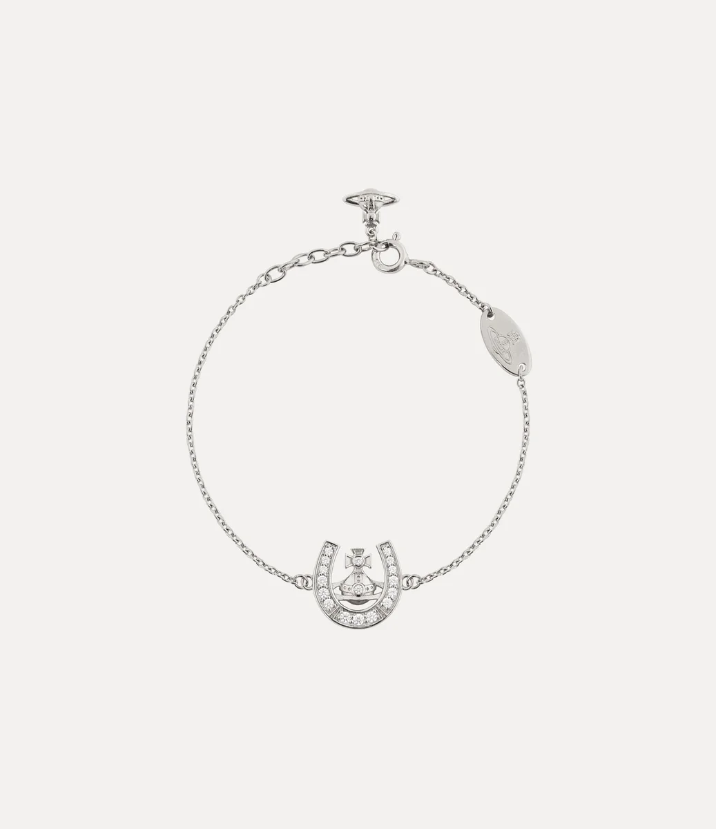 Il bracciale Mare di Vivienne Westwood in argento riciclato è tempestato di scintillanti cristalli tono su tono e presenta un motivo centrale a ferro di cavallo.