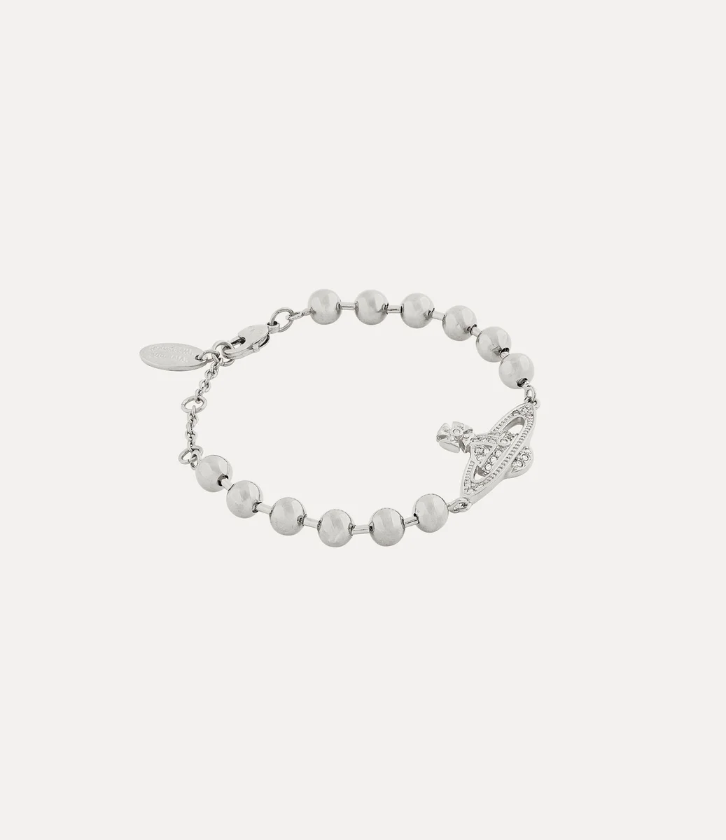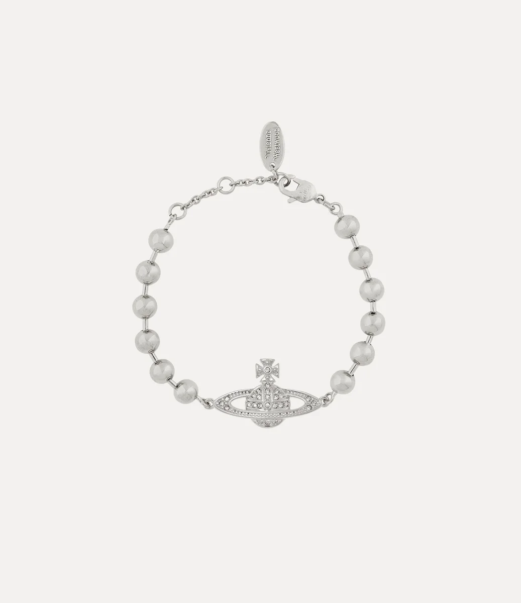 Il bracciale Thames Mini Bas Relief presenta un’elegante catena a palline con un caratteristico globo bidimensionale “Bas Relief” al centro, ispirato al motivo a forma di globo della nostra maison. Incrostato di scintillanti cristalli tono su tono, il gioiello richiama la visione di Vivienne di portare la tradizione nel futuro.