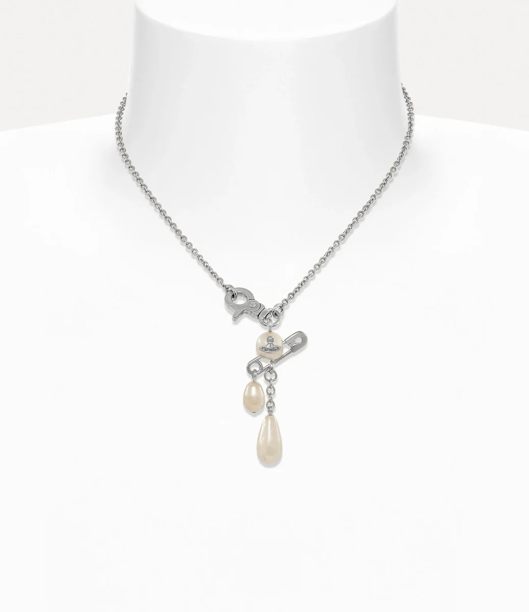 La collana Claude Small presenta una perla arrotondata con un globo centrale, impreziosita dal caratteristico dettaglio a spilla da balia, un omaggio allo stile anticonformista e di ispirazione punk di Vivienne. Una perla pendente e delicati dettagli a catena pendono elegantemente dal ciondolo, aggiungendo movimento al design, mentre la chiusura ispirata alla ferramenta consente una facile chiusura.