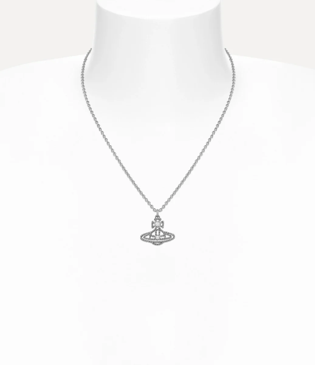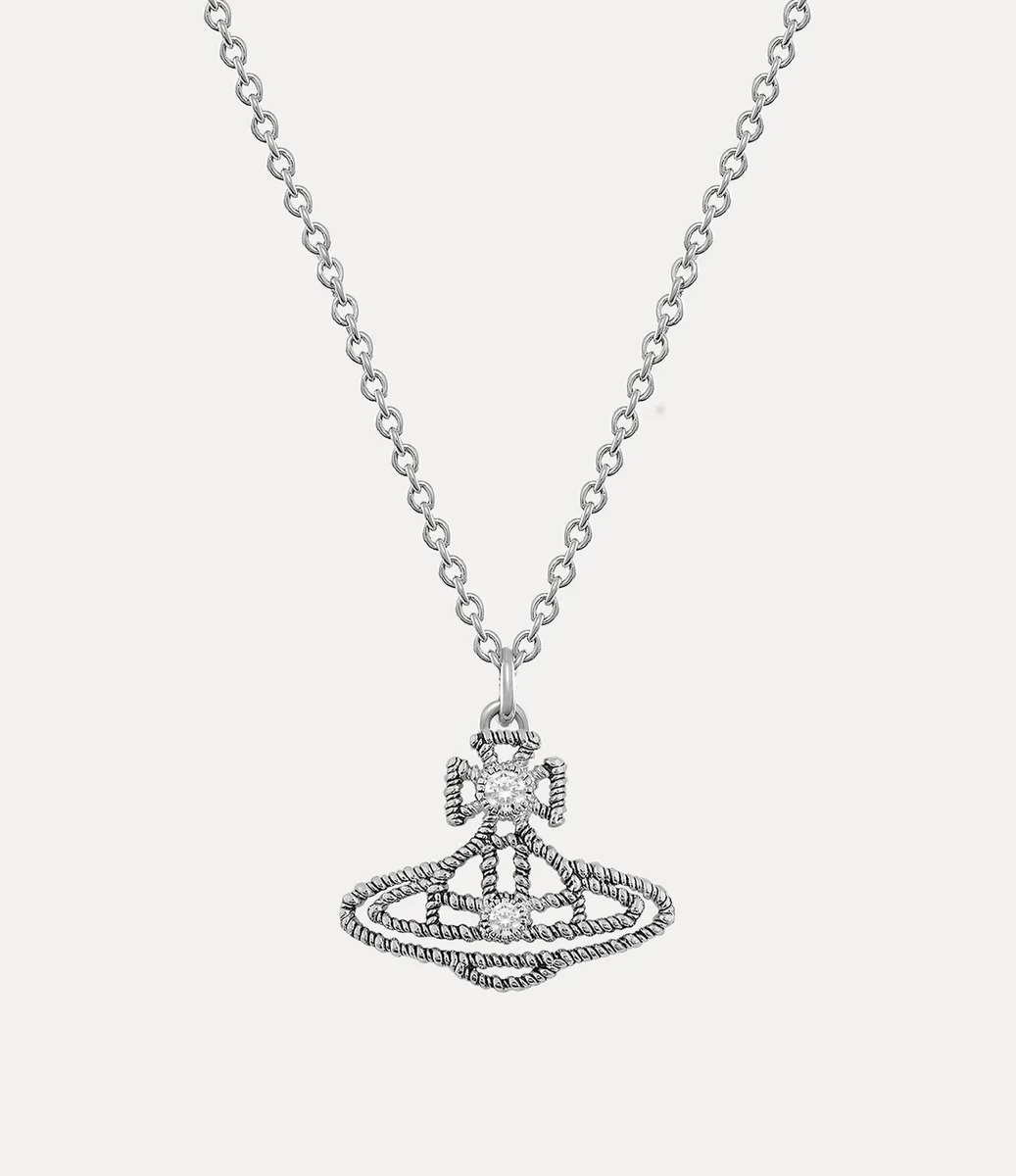 La collana con pendente Coretta di Vivienne Westwood ripropone la silhouette a sfera della maison, con dettagli a corda intrecciata e una leggera patina che ne esalta la texture.