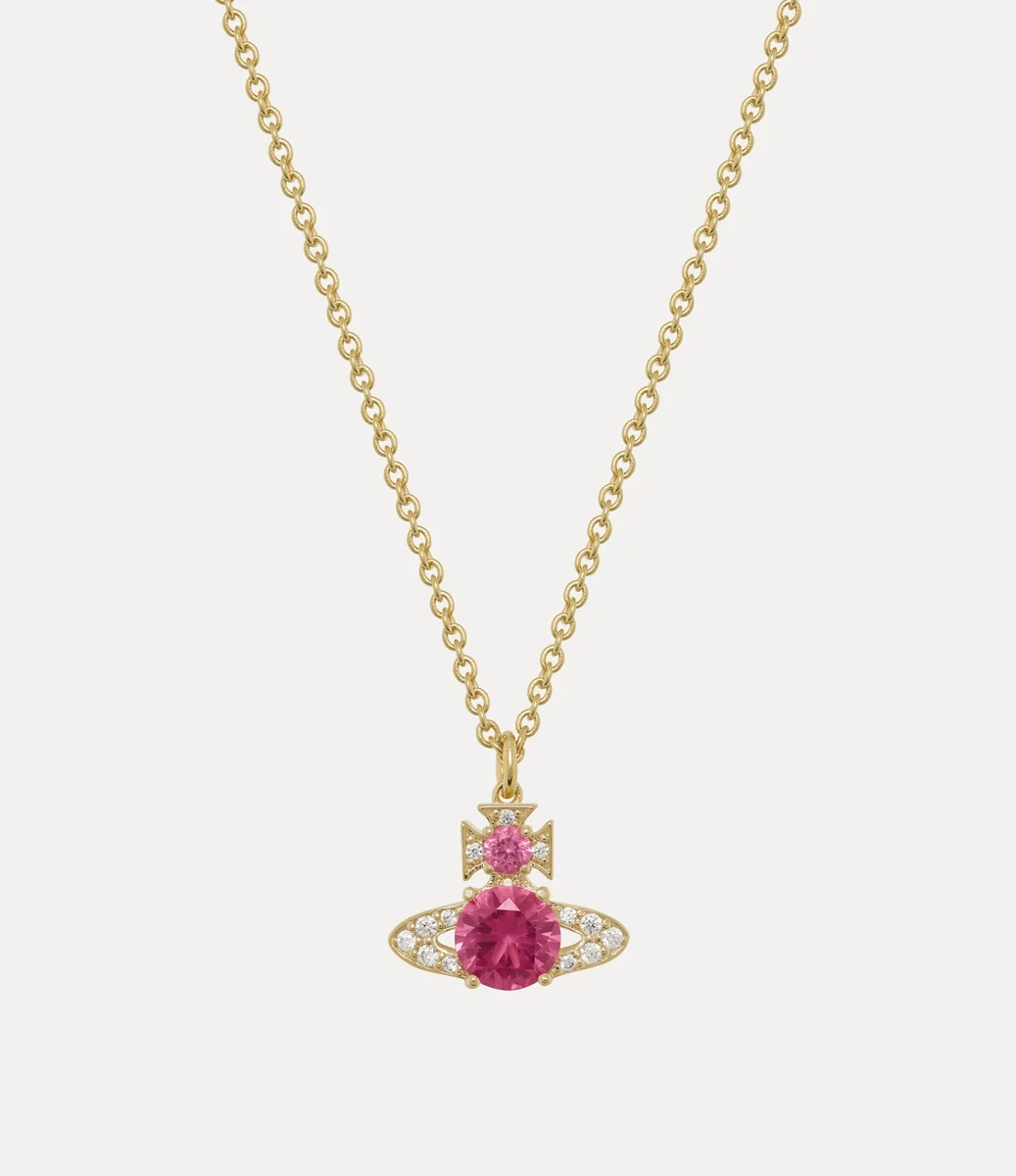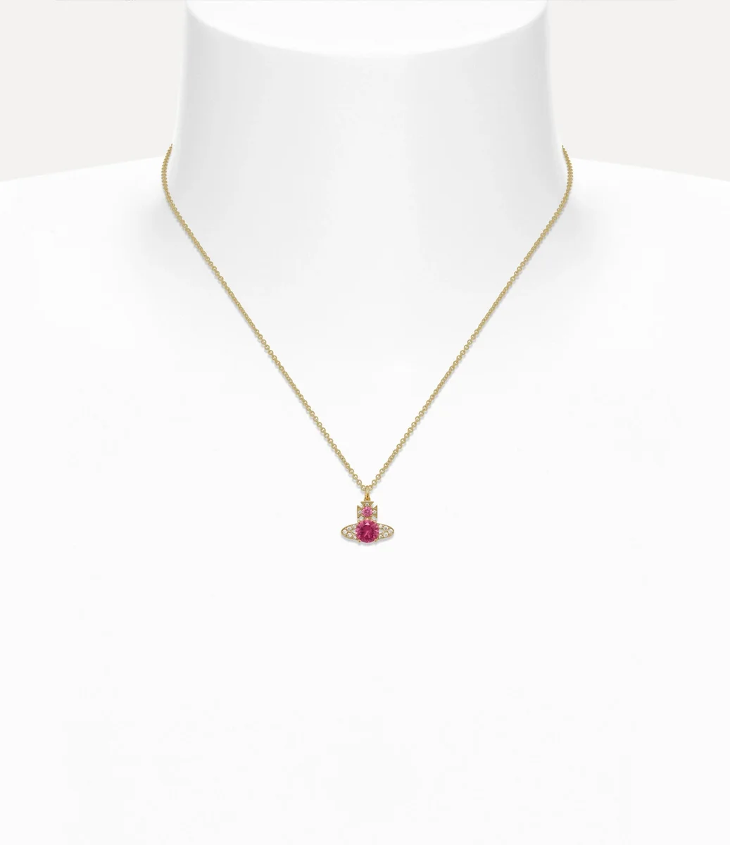 La nostra collana con pendente Ismene torna in questa stagione con una finitura lucida color oro, impreziosita da cristalli rosa e bianchi in un’elegante montatura pavé. Impreziosito da delicati intagli lungo gli anelli di Saturno, il design è completato da un’etichetta ovale, incisa con la nostra scritta sulla chiusura a moschettone.