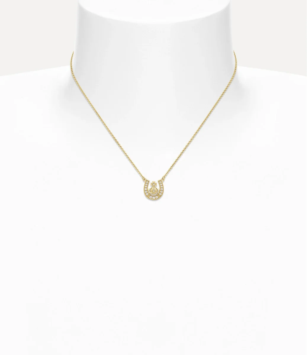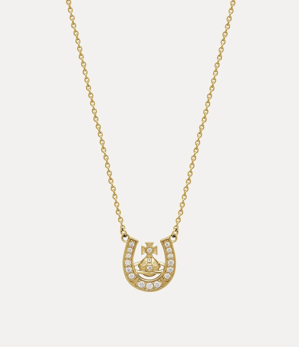 La nostra collana con pendente Mare è realizzata in argento riciclato, con placcatura lucida color oro. Il design presenta il classico motivo a sfera e ferro di cavallo della maison, che rende omaggio all’iconografia distintiva della maison, impreziosito da dettagli in cristallo tono su tono.