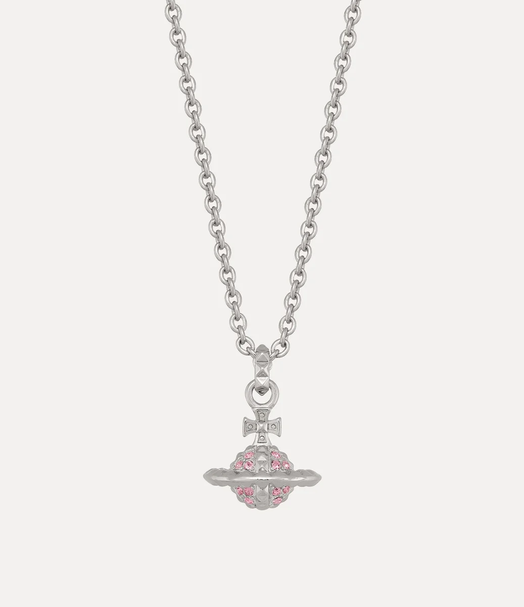 Il design della nostra collana con pendente Mayfair Small Orb si ispira al caratteristico emblema a forma di sfera, che incarna la filosofia di collegare il passato al futuro. Il gioiello presenta un pendente sferico tridimensionale impreziosito da cristalli color rosa chiaro e dettagli a borchie, che evocano il caratteristico approccio punk della maison.
