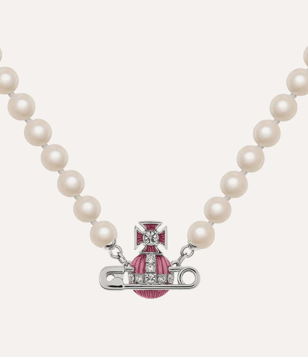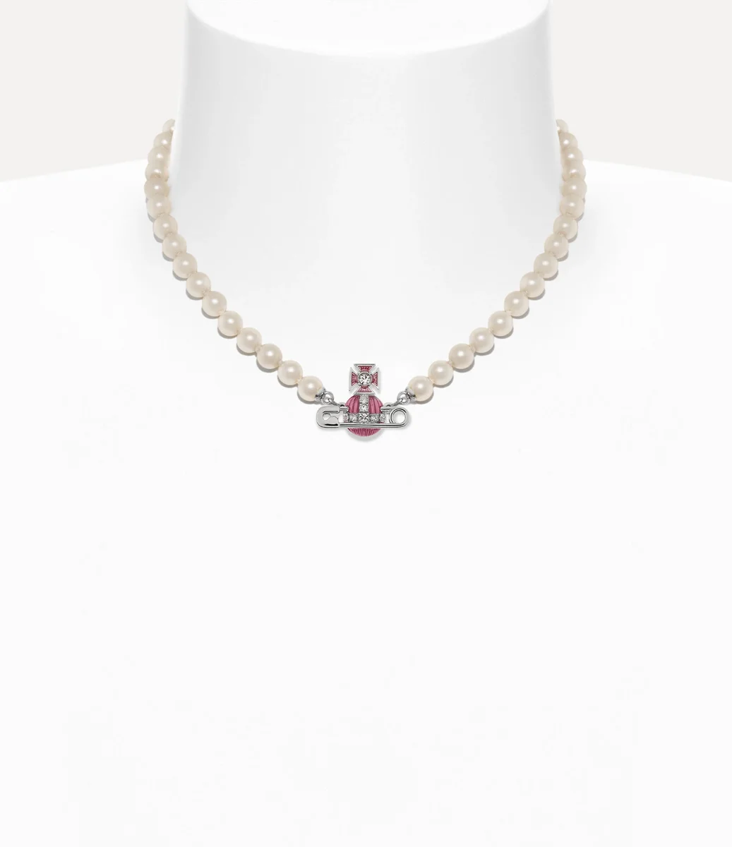 Le perle sono essenziali per l’iconografia della maison, evocando un senso di lusso e ribellione. La collana Kitty Pearl presenta perle in vetro annodate a mano ispirate alla nostra collezione “Portrait” del 1990. Il gioiello è rifinito con un dettaglio a forma di spilla da balia, simbolo di anticonformismo che ricorda l’approccio punk caratteristico di Vivienne.