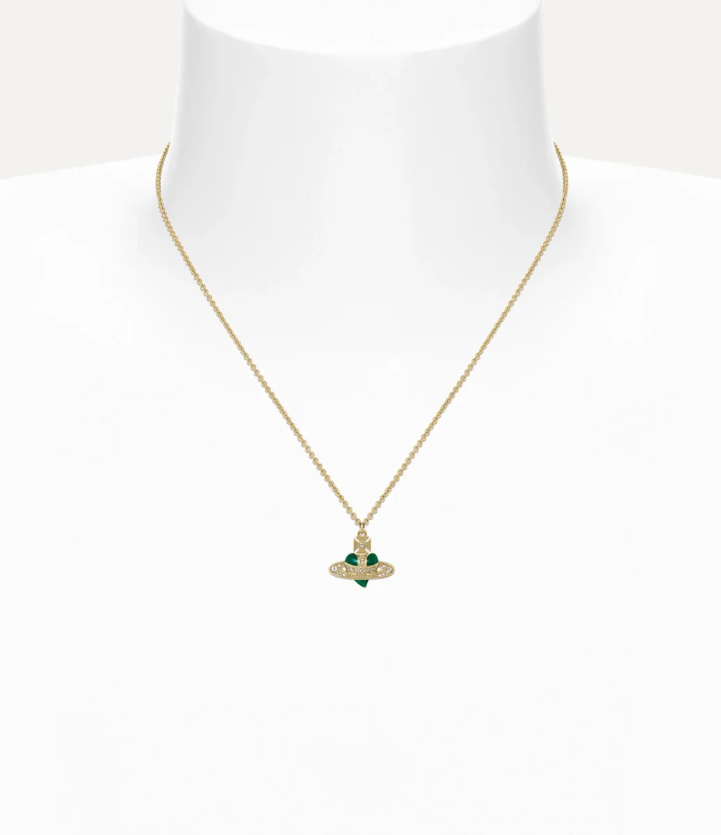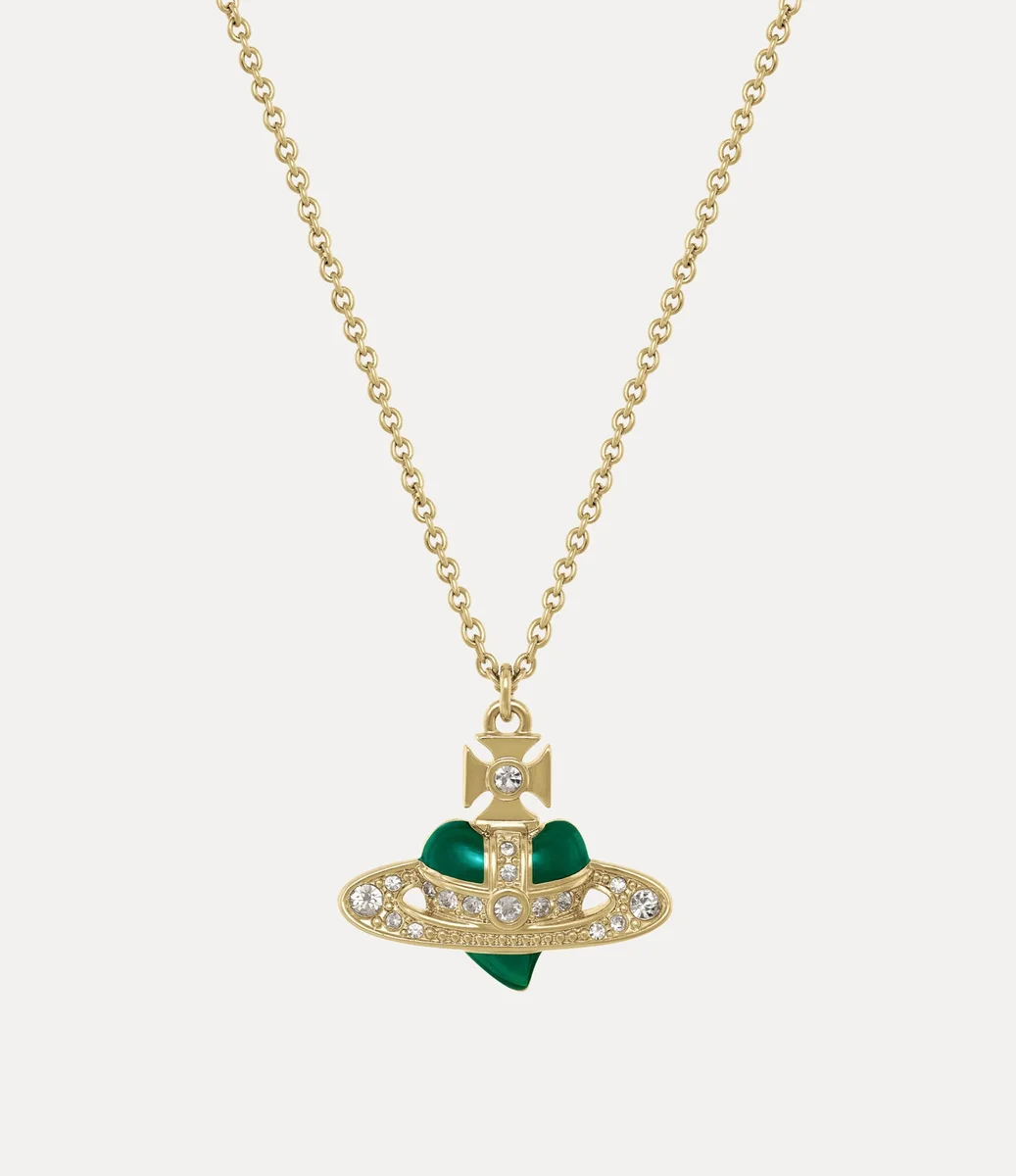 La forma a cuore è diventata uno stile distintivo della maison, sinonimo dell’affetto di Vivienne per l’umanità e il pianeta. La nostra collana con pendente New Diamante Heart ripropone la nostra iconica silhouette asimmetrica a forma di cuore, delineata da cristalli color oro e rifinita con smalto traslucido dipinto a mano al centro del disegno.