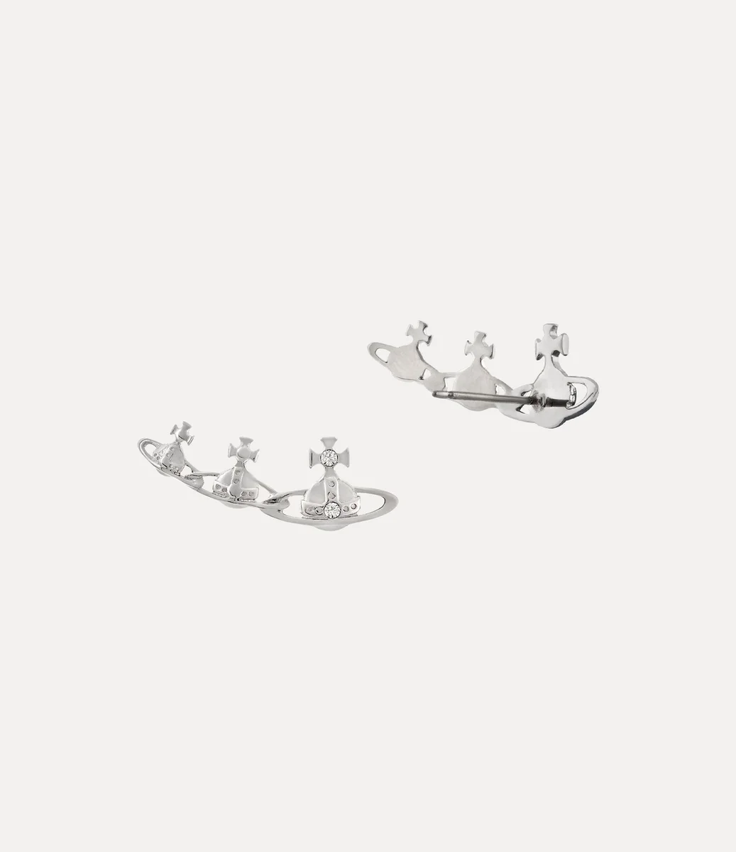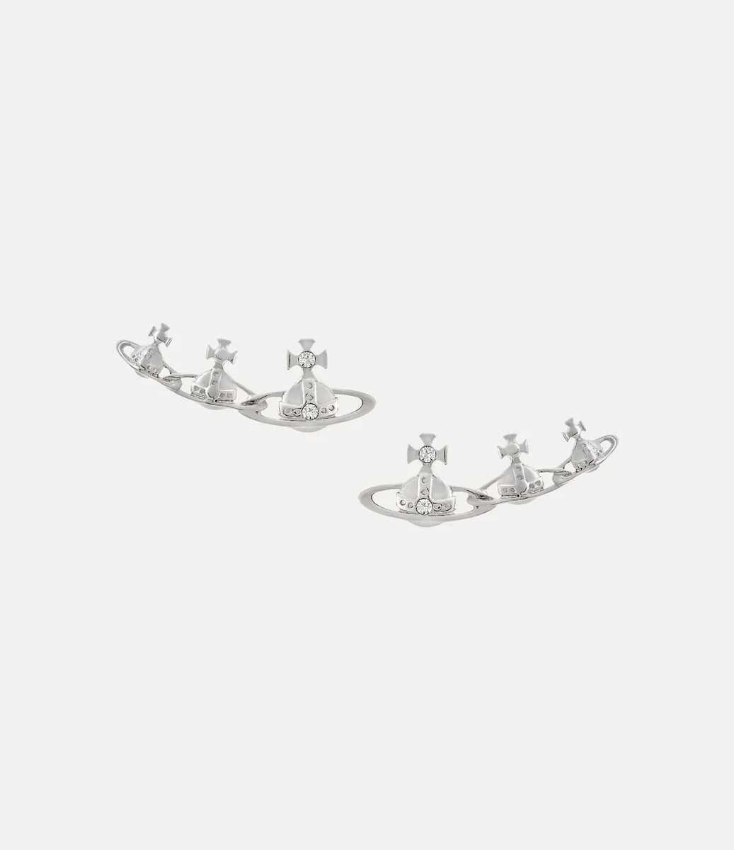I nostri orecchini Candy, realizzati con placcatura color argento, si ispirano al motivo orb, simbolo della maison. Il design presenta sfere interconnesse, che simboleggiano la tradizione, circondate da anelli celesti che ricordano Saturno e rappresentano il futuro.