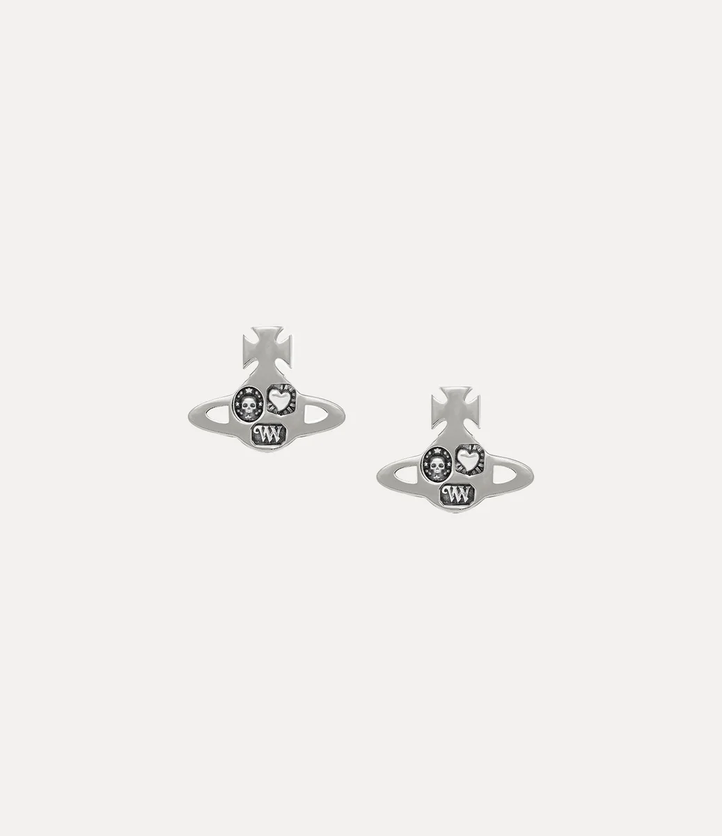 I nostri orecchini Crispin traggono ispirazione dalla tradizionale punzonatura, con un’iconografia della maison riccamente dettagliata al centro, come se fosse impressa nel design. Scolpito in una silhouette a sfera, il pezzo è ulteriormente arricchito da una finitura placcata anticata.