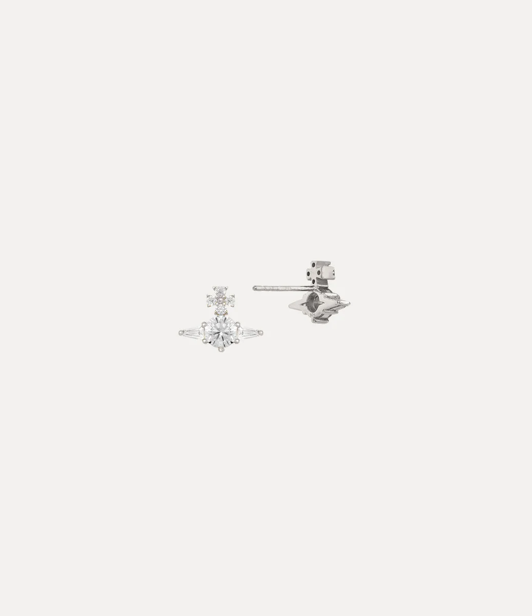 I nostri orecchini Ofelia presentano una silhouette a forma di sfera color platino, ispirata al motivo a forma di sfera caratteristico della nostra maison. Incrostati di scintillanti cristalli baguette di zirconi cubici rotondi e affusolati, il design riflette la visione di Vivienne di portare la tradizione nel futuro.