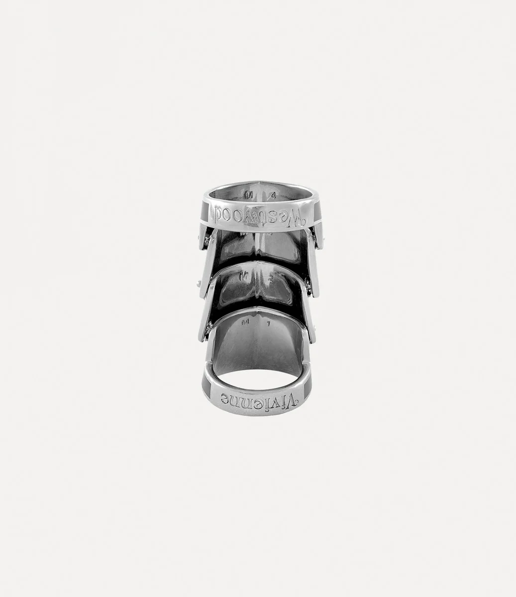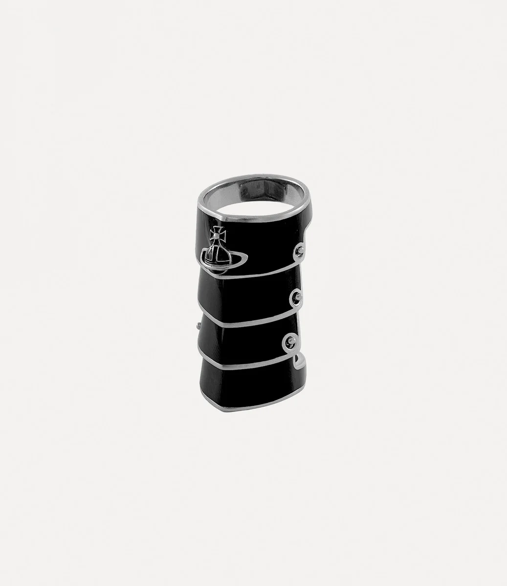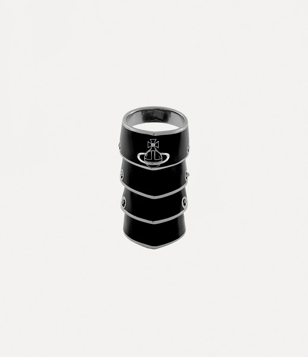 L’anello Artemis riprende il design delle giacche ispirate alle armature della collezione “Time Machine” di Vivienne Westwood del 1988, riflettendo il profondo fascino di Vivienne per la Wallace Collection. Il gioiello presenta sezioni smaltate a mano che si sovrappongono, decorate con il nostro caratteristico motivo a sfera, che incarna la filosofia di portare il passato nel futuro.