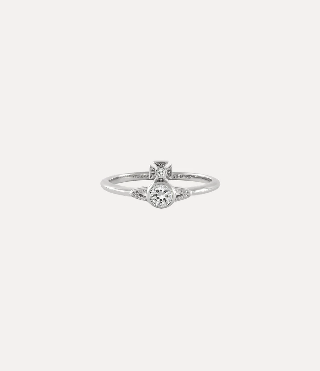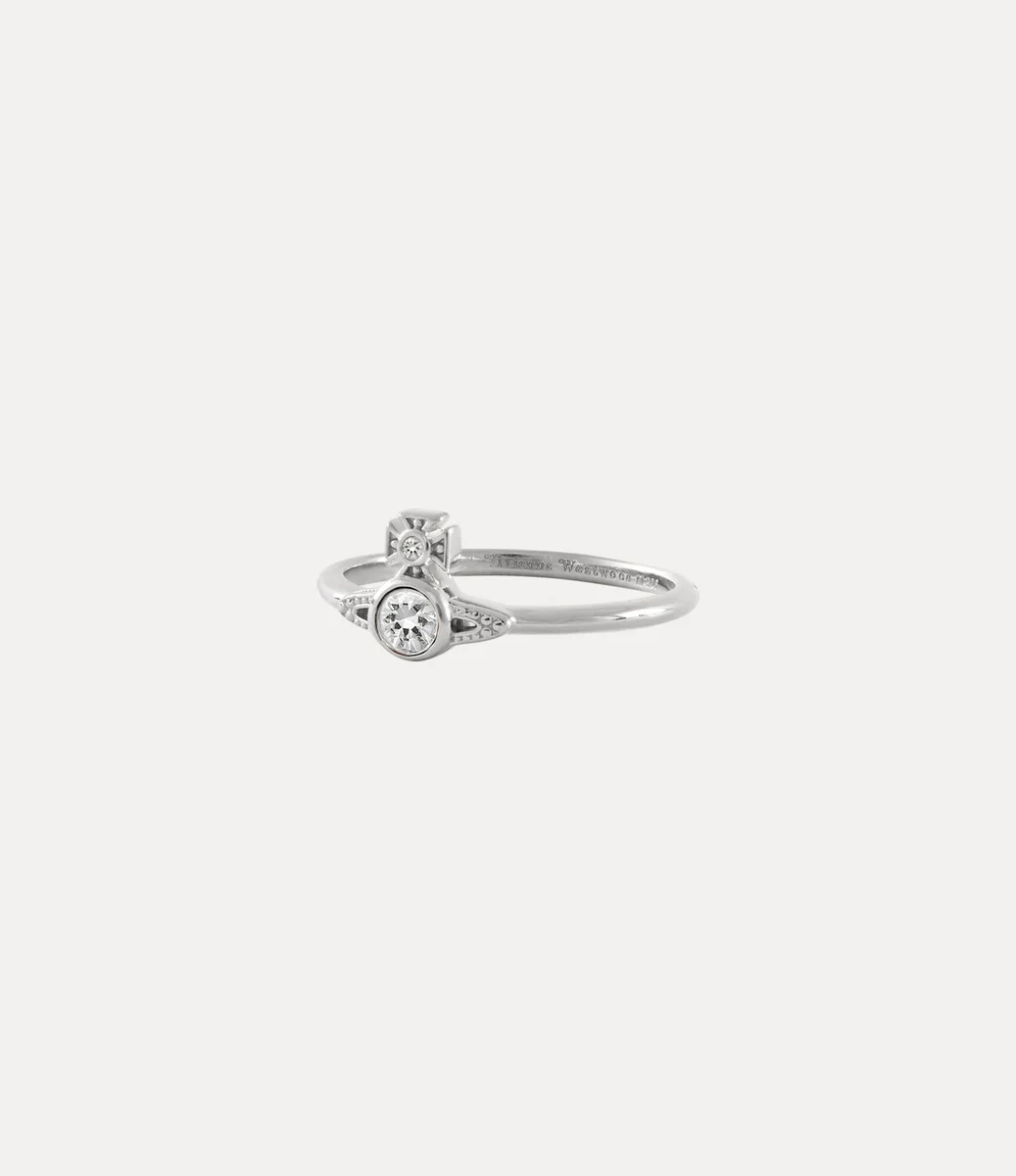Il nostro anello London Orb in argento riciclato presenta una delicata fascia che converge sul centro a forma di globo, richiamando la visione di Vivienne di proiettare la tradizione nel futuro. L’anello Saturn è impreziosito da dettagli raffinati e rifinito con cristalli bianchi.