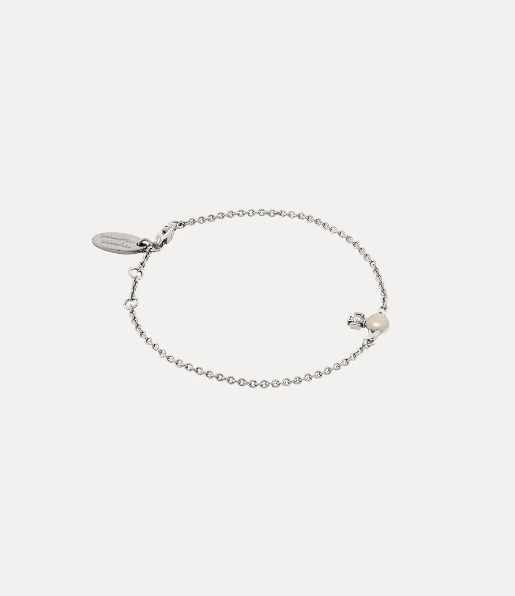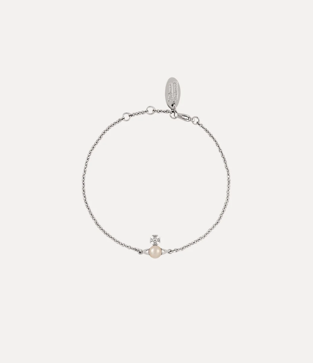 Le perle sono essenziali per l’iconografia della maison, evocando un senso di grandiosità e lusso. Il bracciale Balbina presenta una perla di vetro scintillante al centro del motivo a sfera, che evoca la visione di Vivienne di lanciare la tradizione nel futuro.
