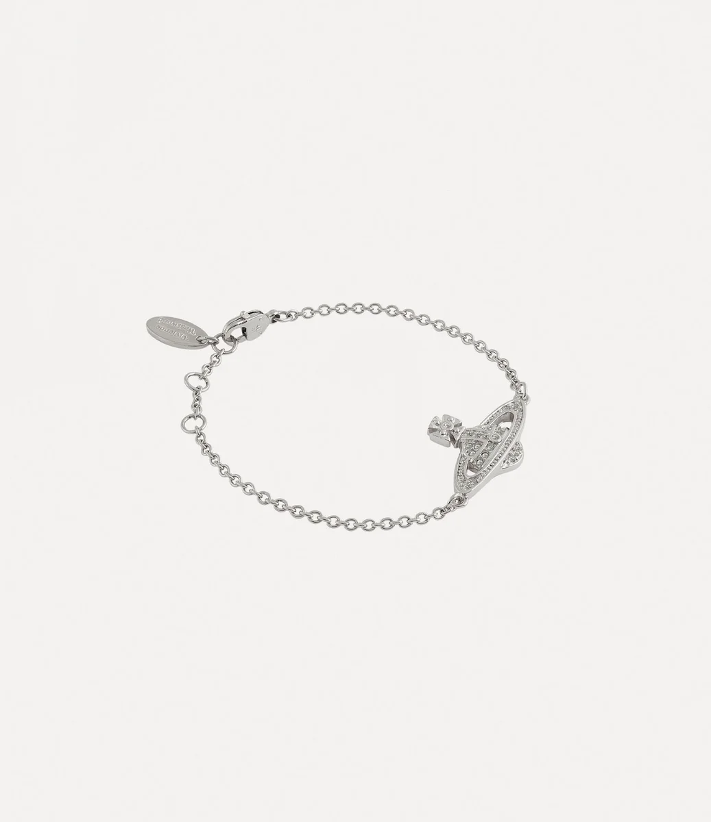 Il nostro bracciale Mini Bas Relief Chain presenta al centro un caratteristico globo color argento, ispirato al motivo distintivo della maison. Incastonato con cristalli bianchi incastonati a pavé, il gioiello è rifinito con una targhetta ovale incisa con una lettera sul chiusura a moschettone.