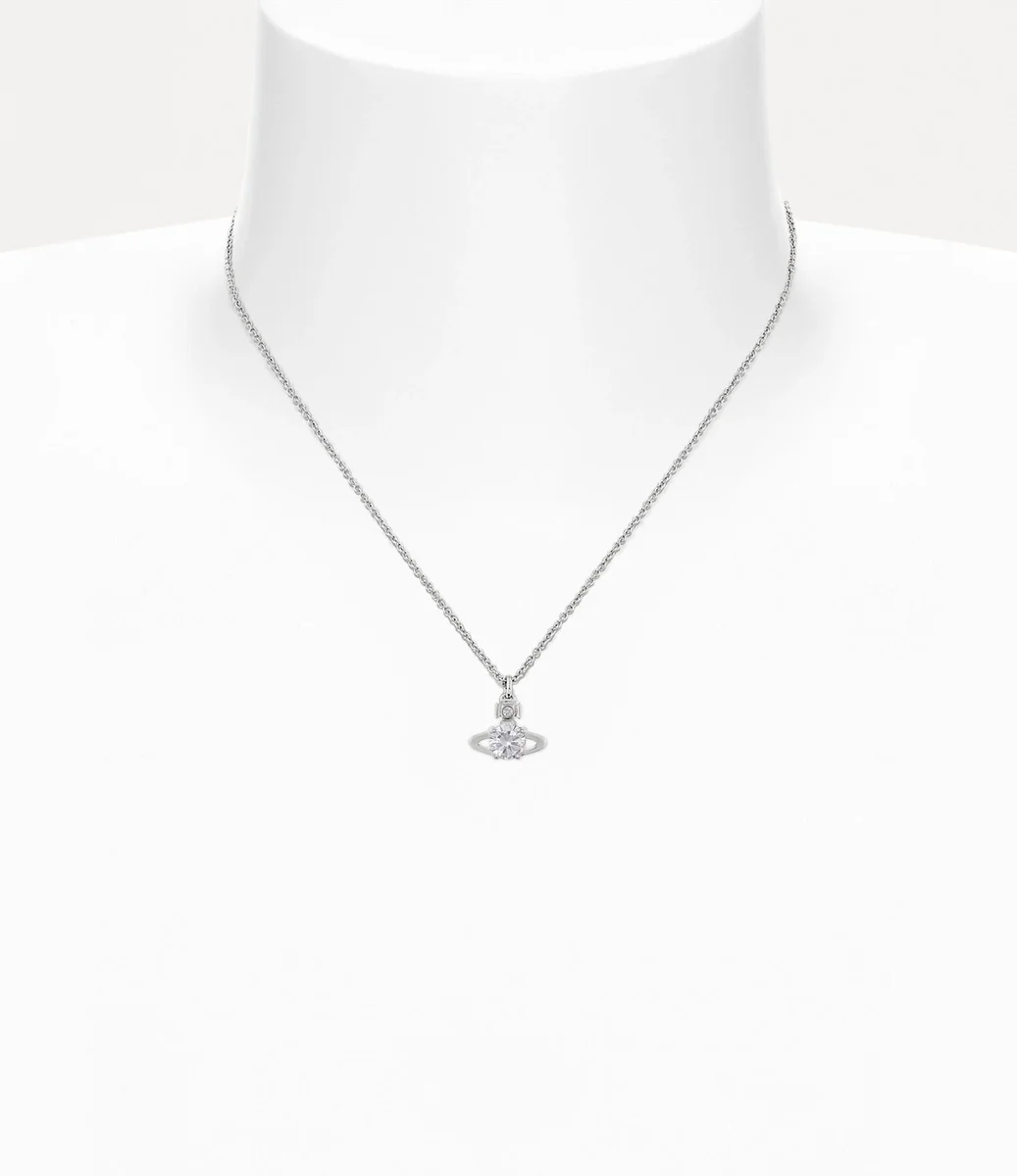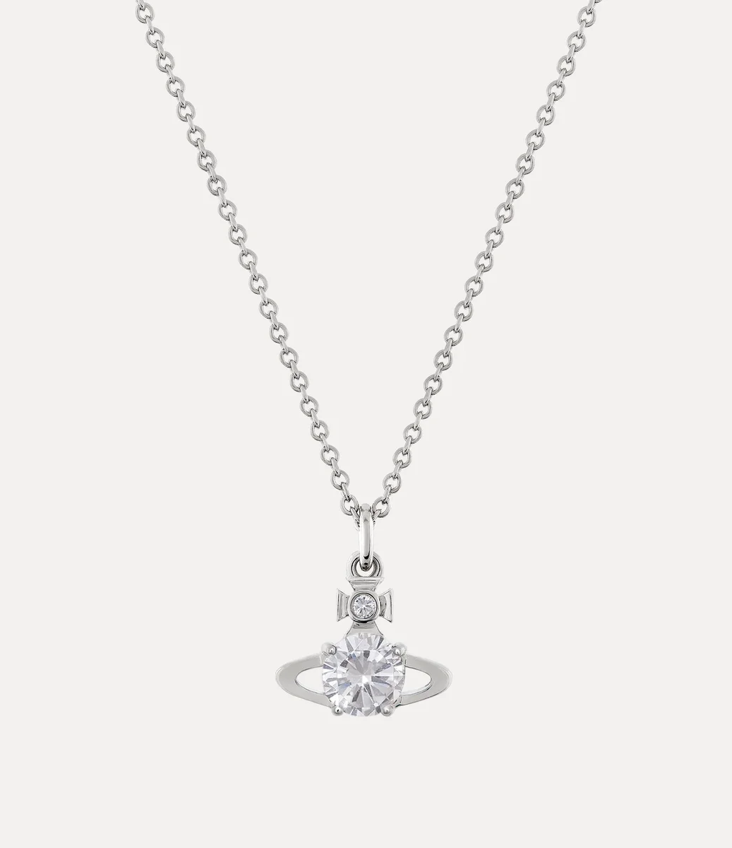 Il nostro caratteristico motivo a sfera è presente al centro della collana con pendente Reina di questa stagione, sinonimo della visione di Vivienne di portare la tradizione nel futuro. Il gioiello è dotato di una catena regolabile con un ciondolo inciso con una lettera appeso alla chiusura a moschettone, rifinito in argento e impreziosito da cristalli bianchi.