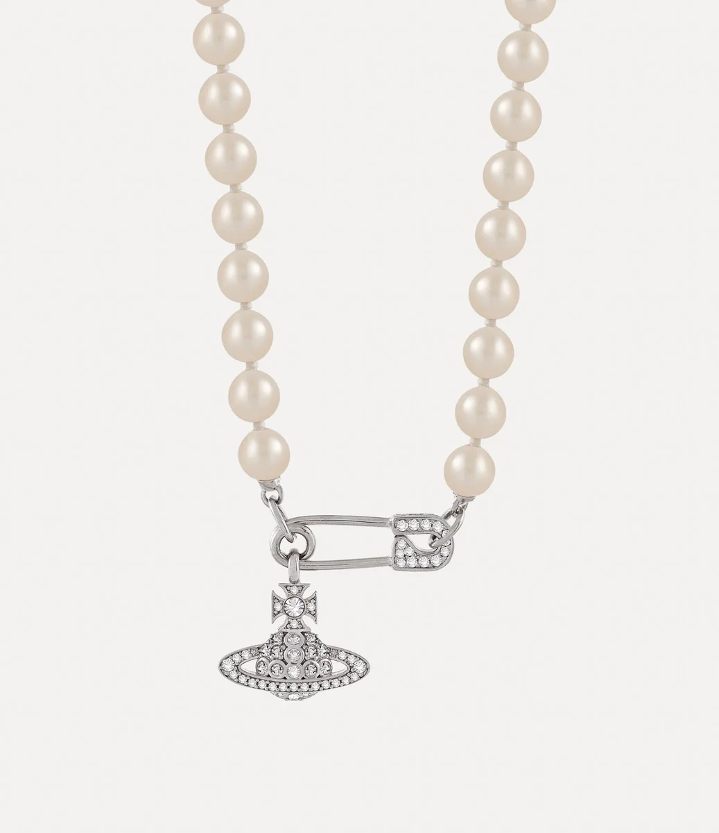 Le perle sono un elemento chiave dell’iconografia della maison, simbolo di lusso e ribellione. La collana Lucrece Pearl presenta un filo di perle in vetro, impreziosito da una sfera tempestata di cristalli che pende da un ciondolo a forma di spilla da balia. Questo intramontabile motivo a spilla da balia, simbolo di anticonformismo, riflette l’iconico approccio punk di Vivienne.