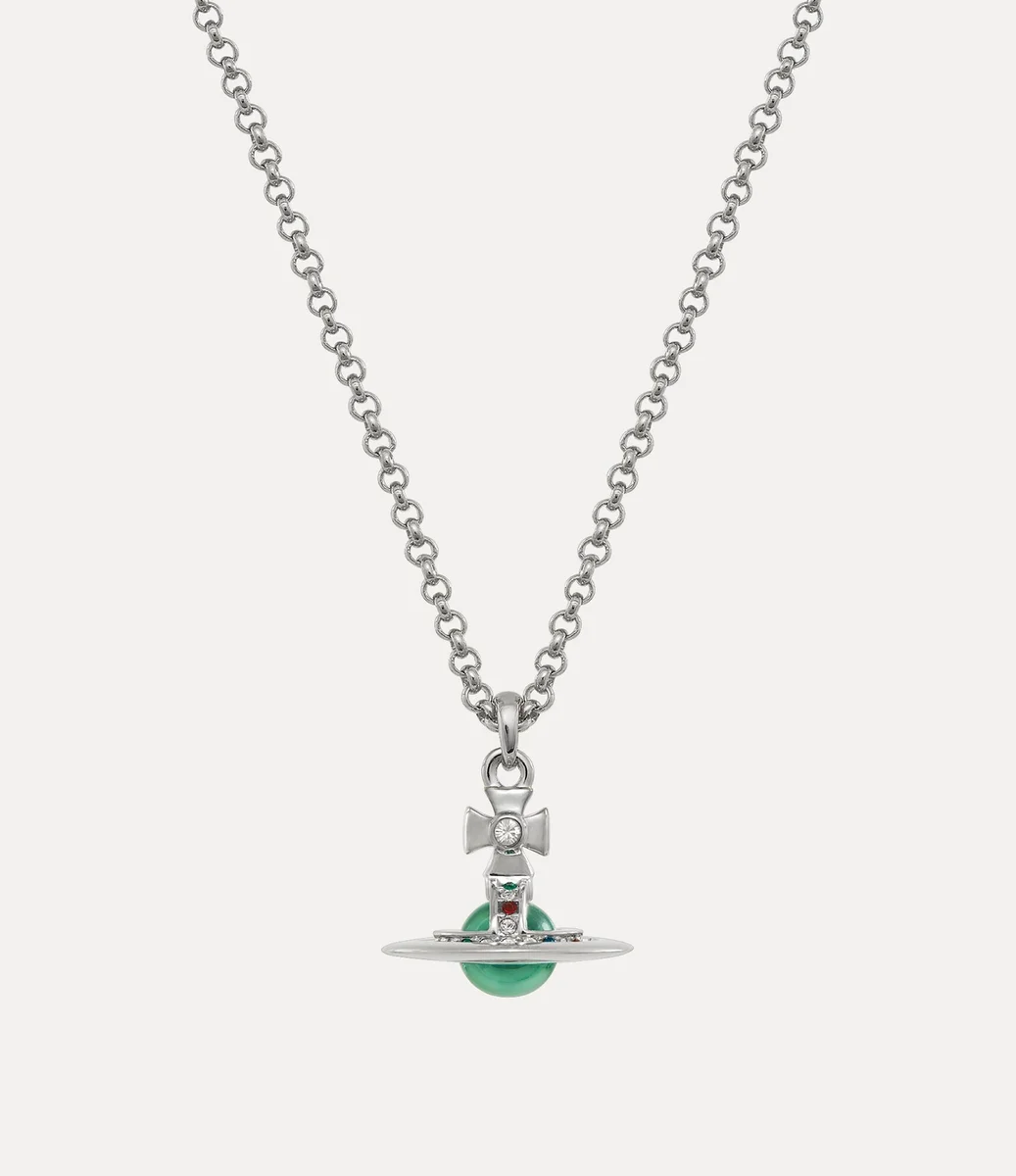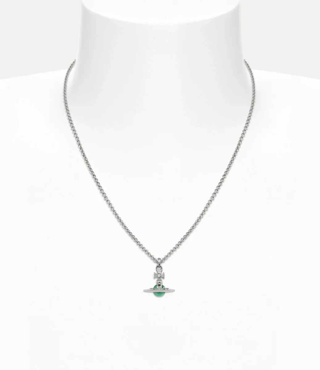 La nostra collana con pendente New Petite Orb è diventata uno stile distintivo della maison. In questa stagione, il gioiello viene rivisitato con una placcatura color argento e un globo tridimensionale colorato racchiuso in un anello di Saturno tempestato di cristalli, sinonimo della filosofia di proiettare il passato nel futuro.