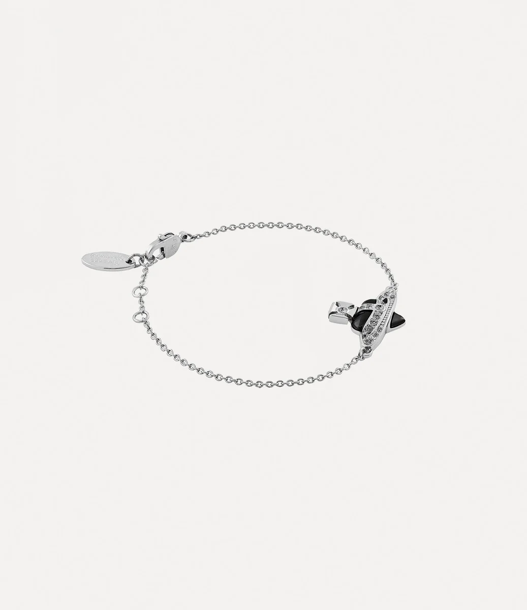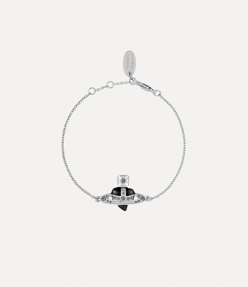 Il nostro nuovo bracciale Diamante Heart presenta un motivo a cuore asimmetrico, che richiama l’affetto di Vivienne per l’umanità e il pianeta. Realizzato in placcatura argentata, il design presenta un cuore smaltato nero dipinto a mano, riccamente decorato con scintillanti cristalli.