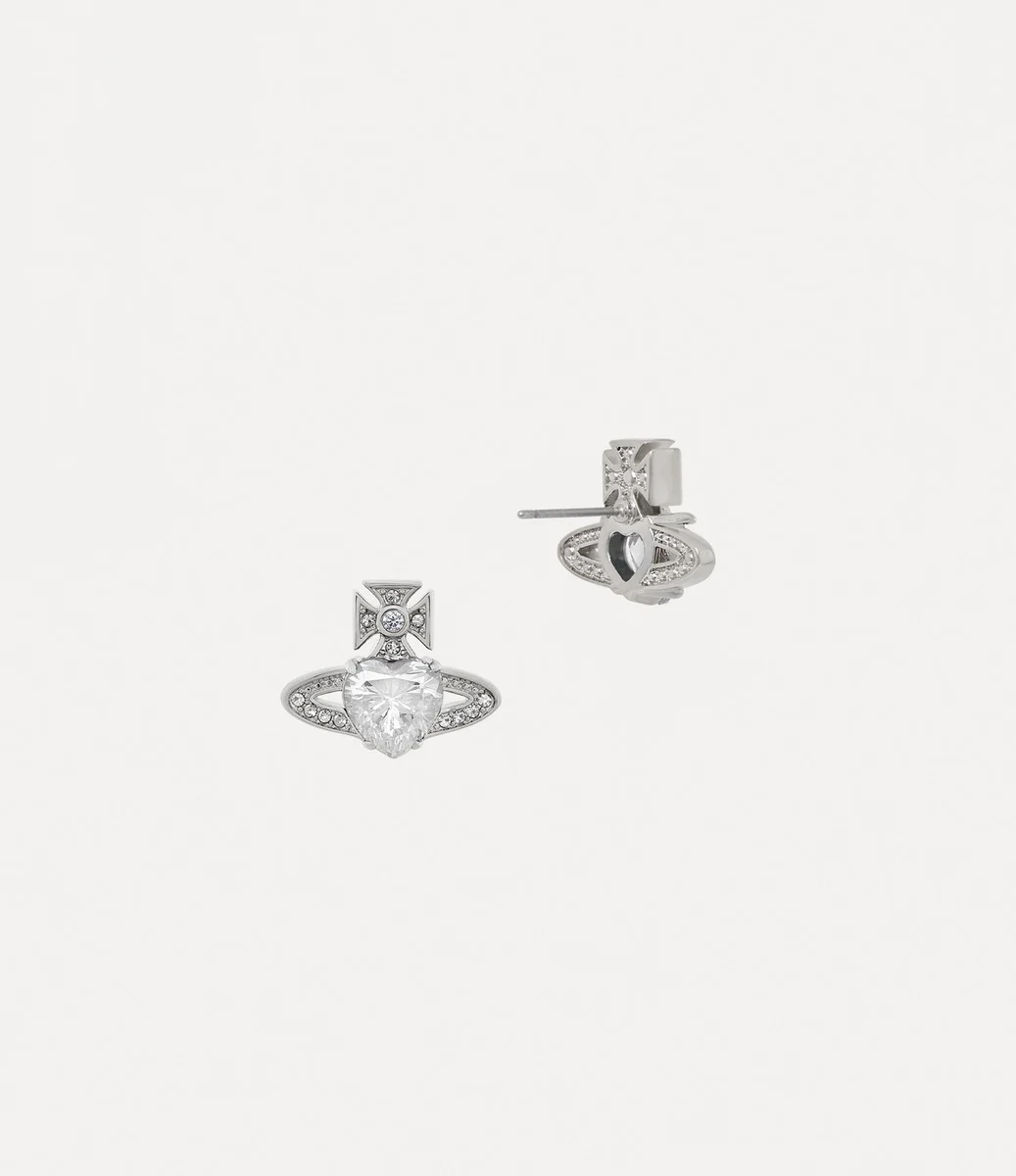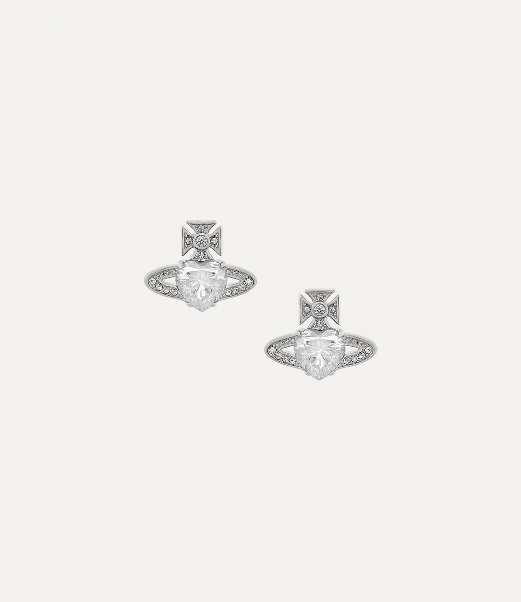 Gli orecchini Ariella color argento presentano un cristallo a forma di cuore al centro del design, che richiama l’affetto di Vivienne per l’umanità e il pianeta, mentre l’anello di Saturno lo circonda come simbolo del futuro. Il gioiello è delicatamente rifinito con decorazioni in cristallo bianco e completato da una placcatura lucida color argento.