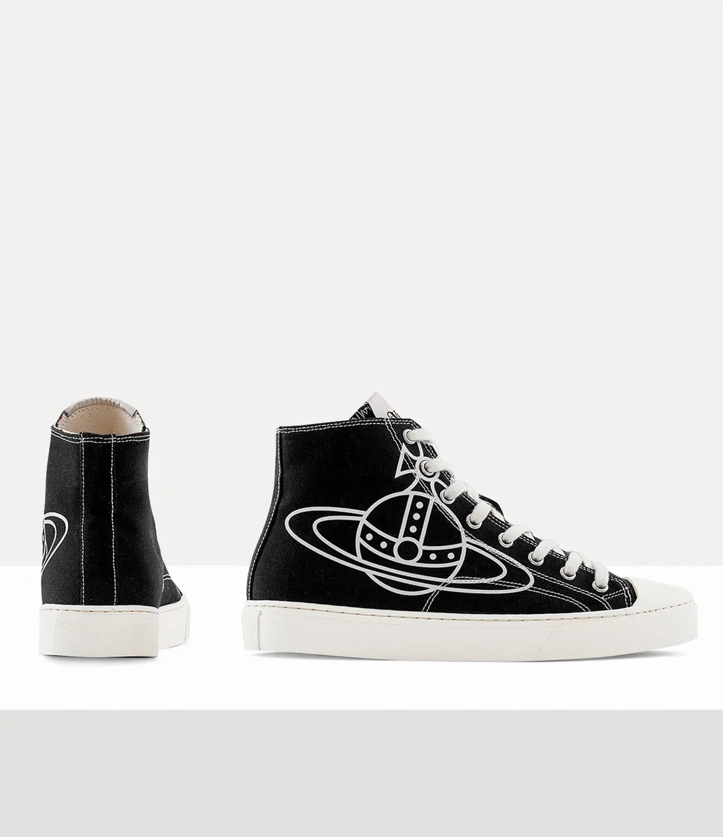 Le nostre scarpe da ginnastica in tela alta presentano il motivo “Line Orb” d’archivio della maison su tutto il design, sinonimo della visione di Vivienne di lanciare la tradizione nel futuro. Il modello offre una finitura in tela di cotone, impreziosita da un’etichetta tessuta sulla linguetta.
