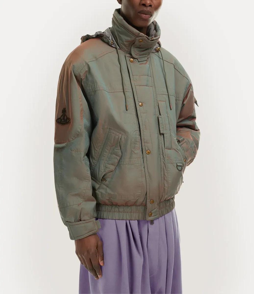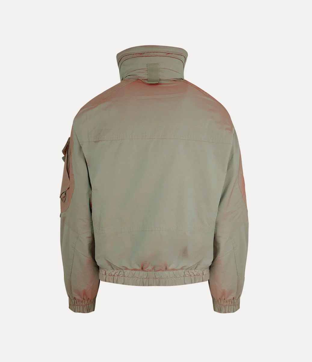 Il nostro bomber Nevada è realizzato con una finitura bicolore, caratterizzata da una morbida lavatura verde-marrone che offre un effetto iridescente e consumato. Tagliato con un collo alto a imbuto e una chiusura con cinturino di sicurezza, il capo presenta maniche raglan lunghe e un corpo leggermente corto e voluminoso.